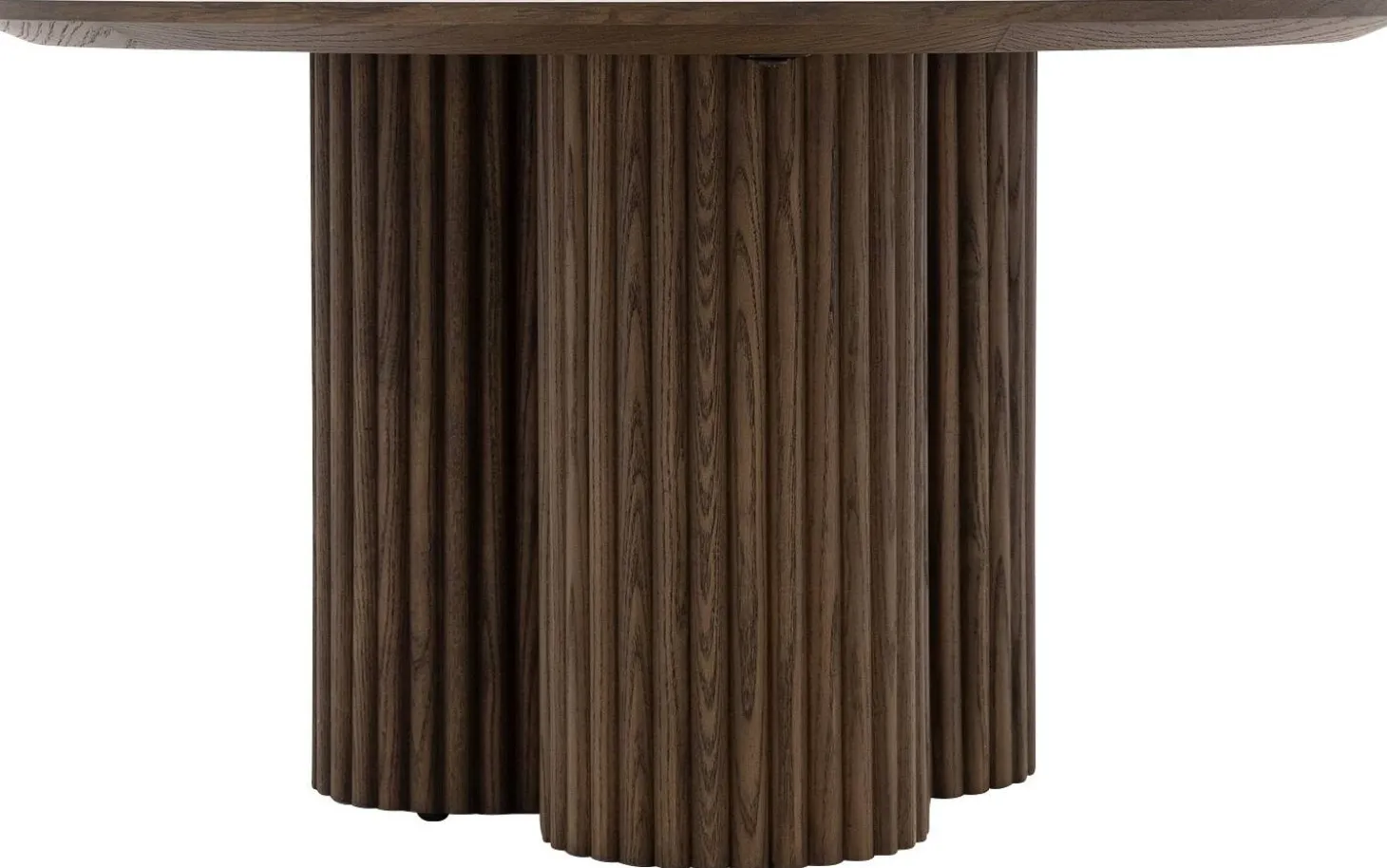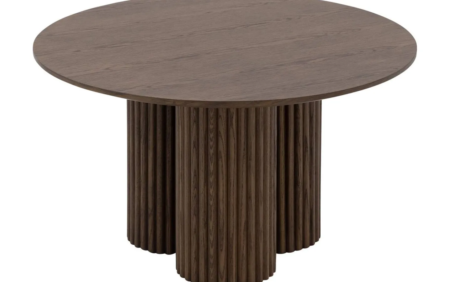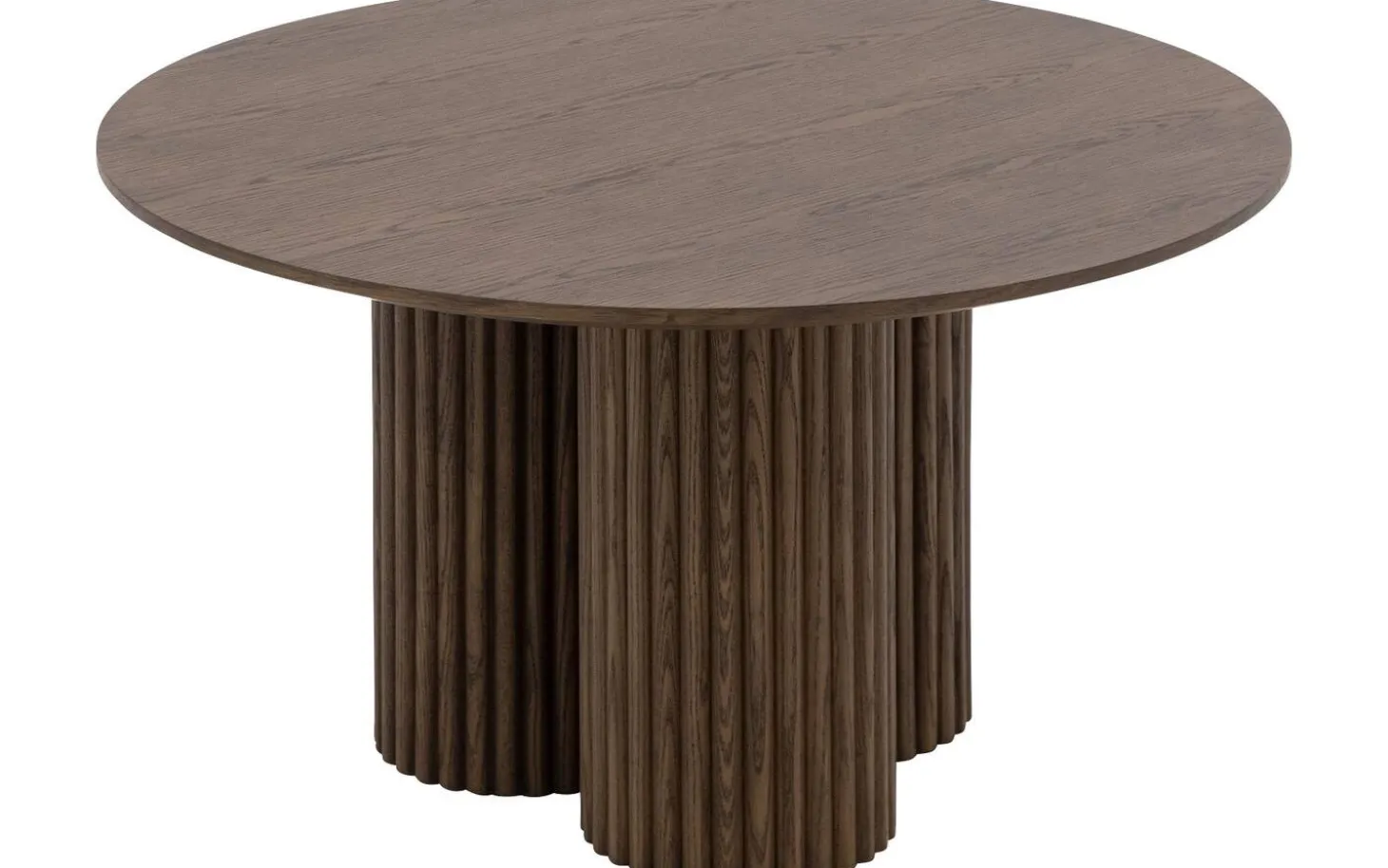 Ronde salontafel Melani heeft een zachte, cirkelvormige vorm en een warme bruine kleur. De smoke afwerking op het eikenhout geeft het blad een diepte die vergelijkbaar is met gerijpt hout. Tijdloos en tegelijk heel eigentijds.