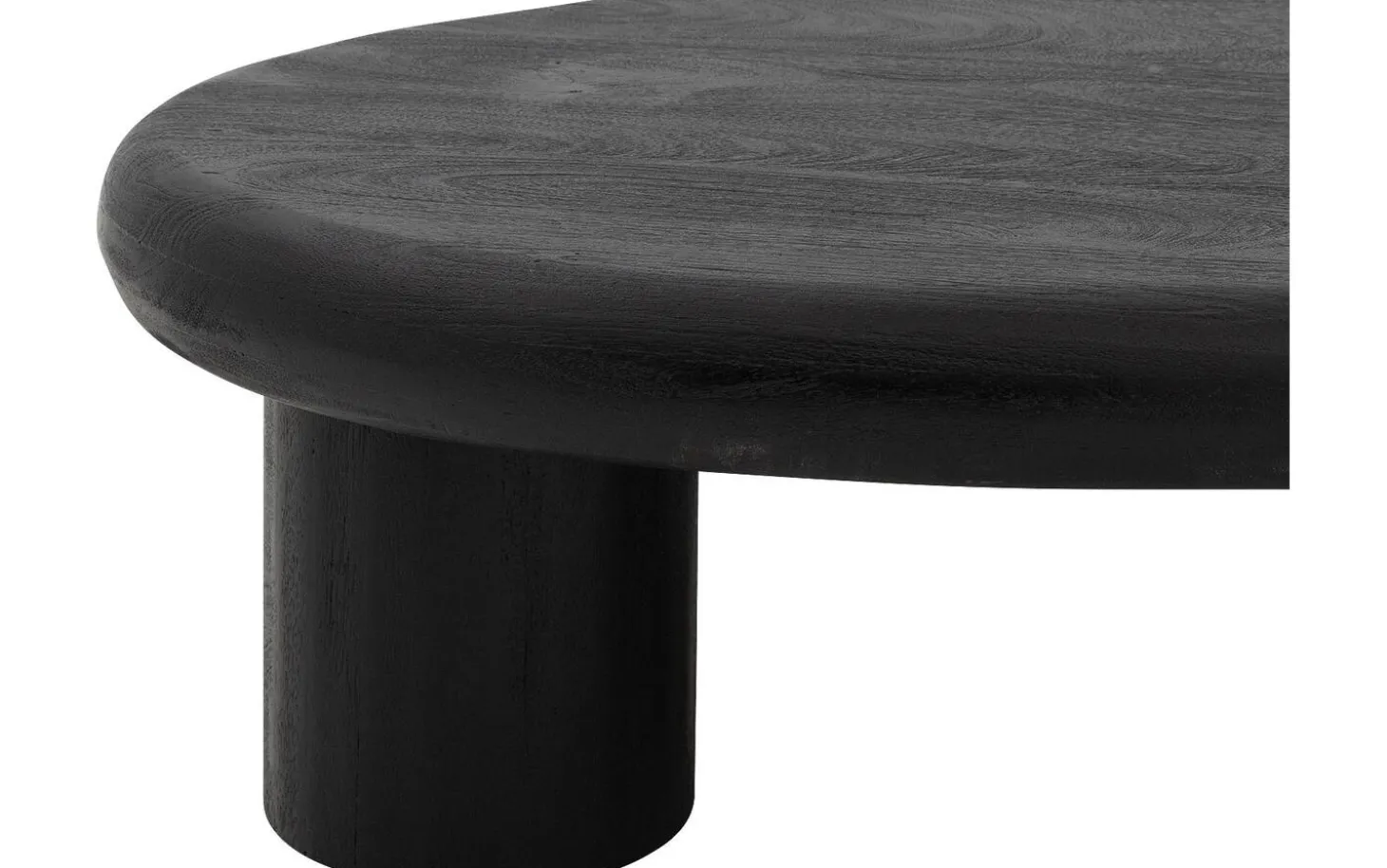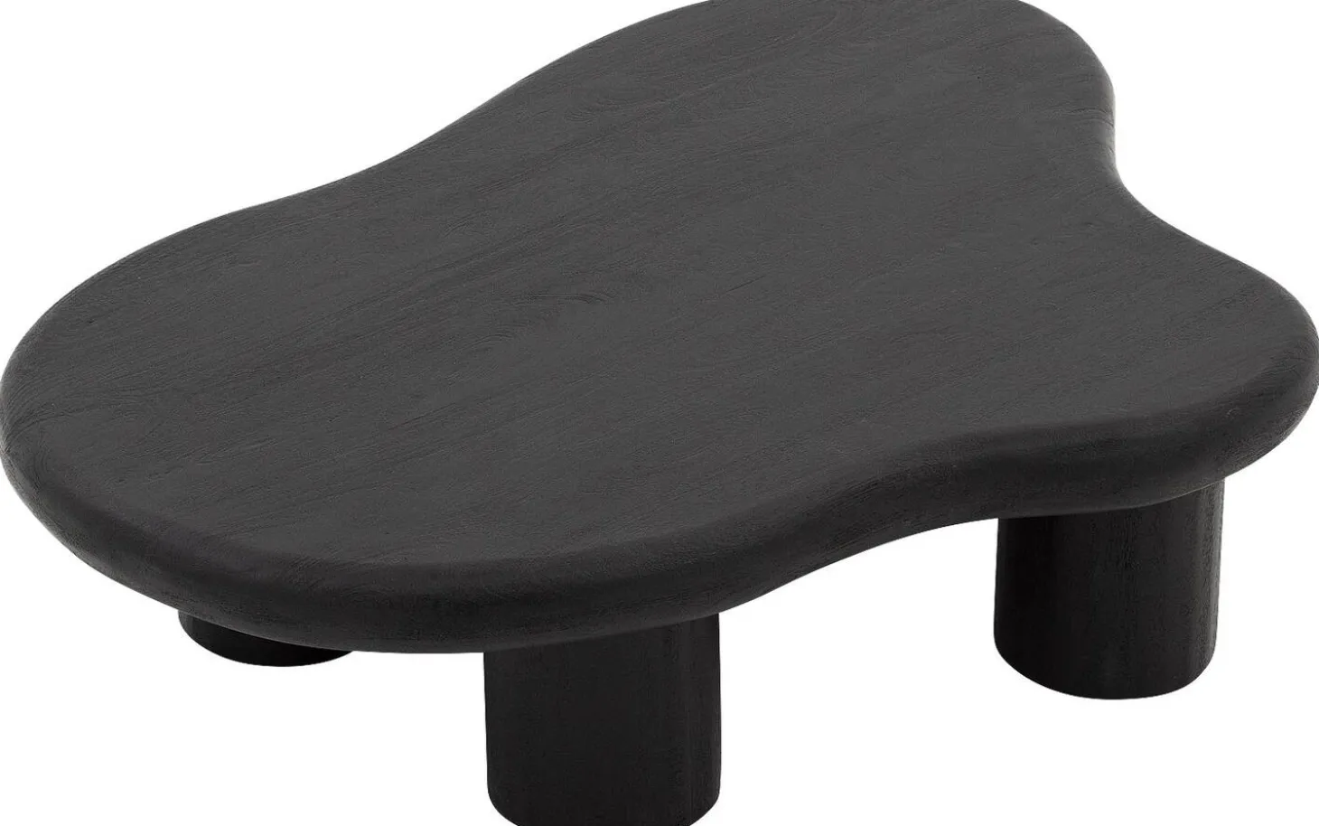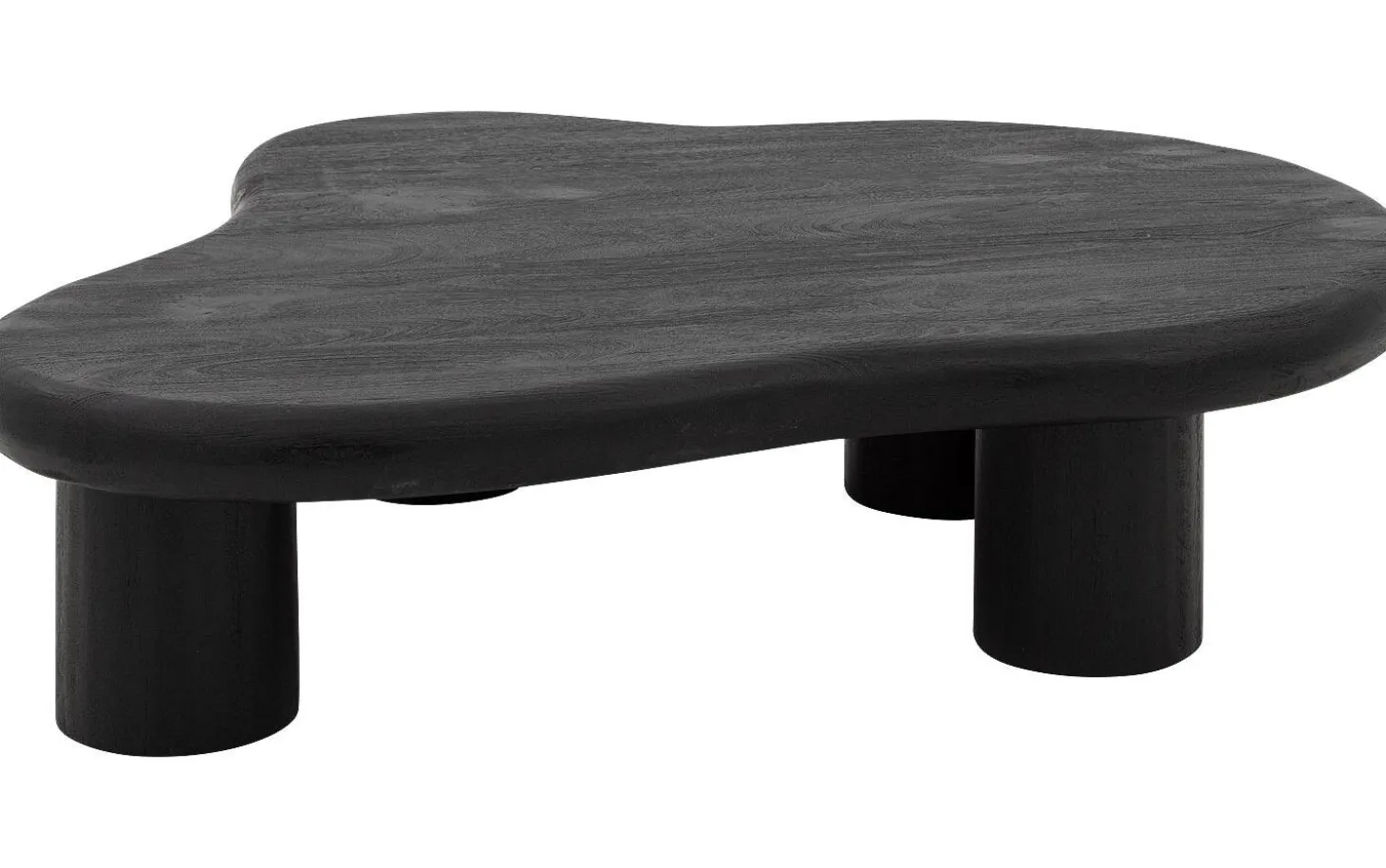 Zwarte organische salontafel Savi combineert vloeiende vormen met een donkere, diep gelakte kleur. Het mangohout in zwarte lak geeft de tafel een rijke, moderne uitstraling. De zachte contouren zorgen dat de tafel, ondanks de donkere kleur, luchtig blijft.
