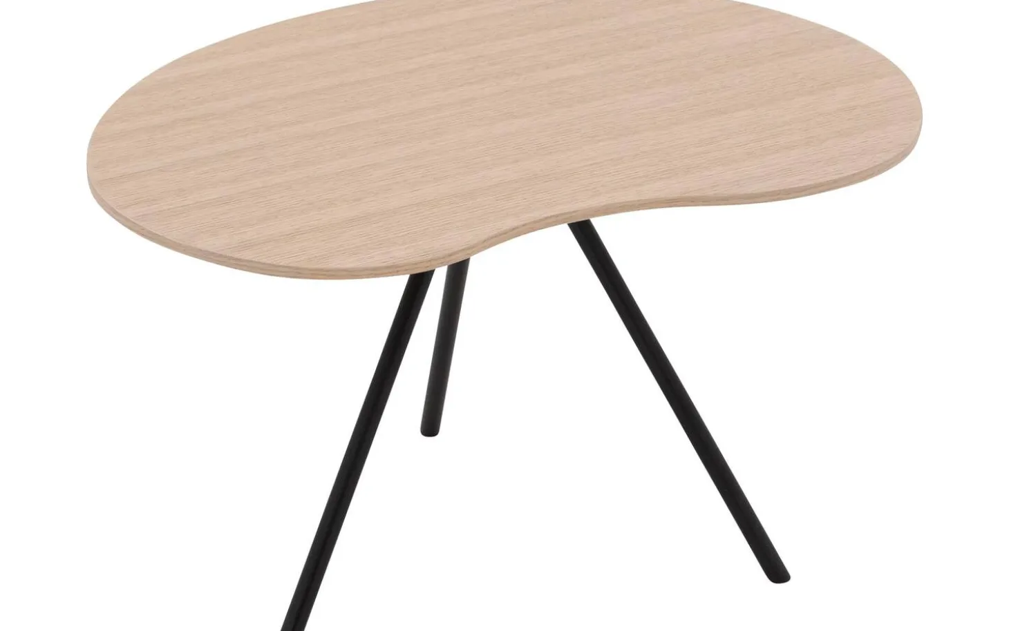 Couchtisch Saya hat eine organische Form, die eine weiche, natürliche Ausstrahlung verleiht. Der runde schwarze Fuß kontrastiert schön mit der cremeweißen Tischplatte und sorgt für einen zeitgemäßen, modernen Look. Das Furnier aus Eichenholz lässt die charakteristische Maserung wunderschön zur Geltung kommen.