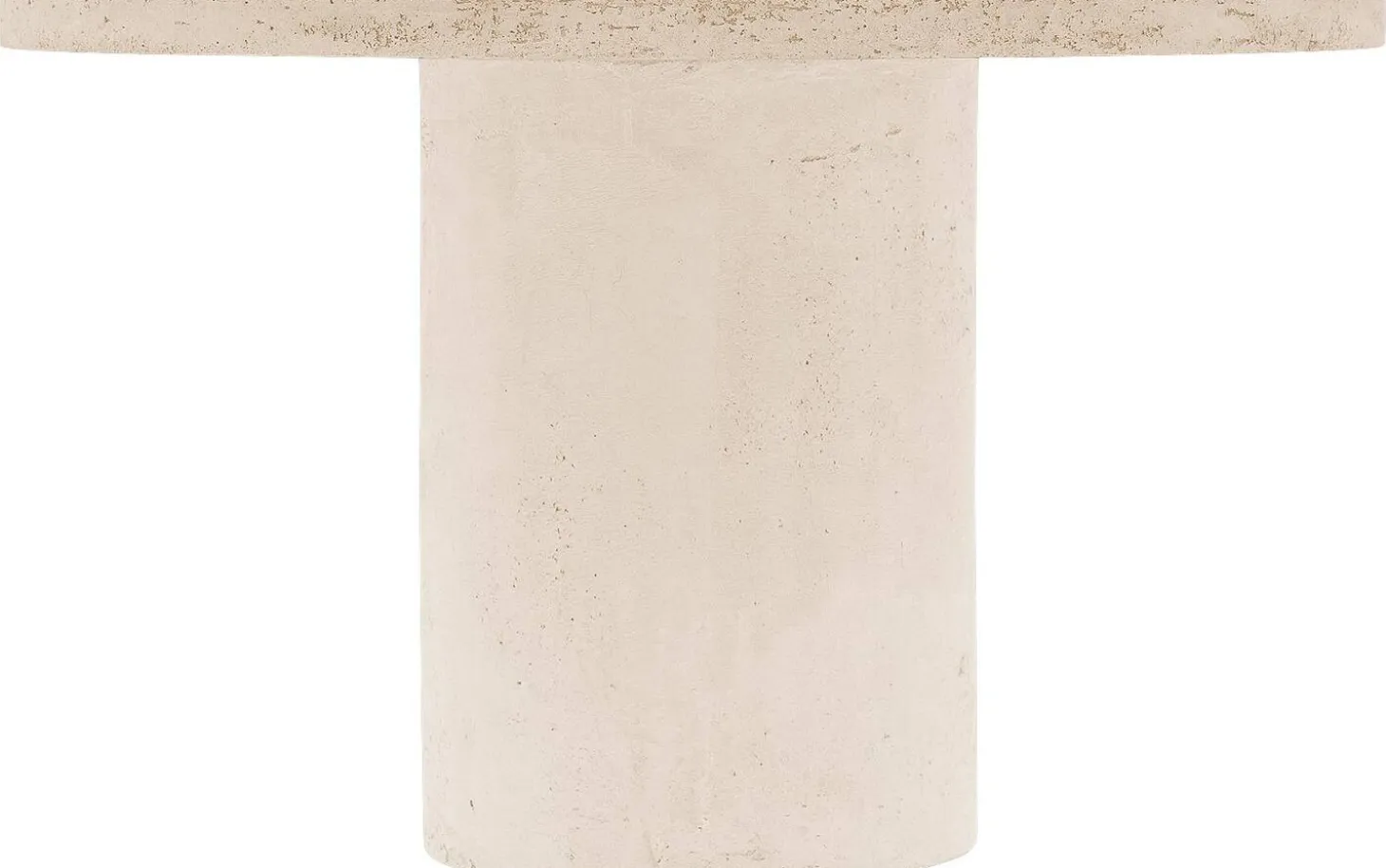 Stone hat eine runde Form, die Sanftheit in jedes Wohnzimmer bringt. Der Säulenfuß aus Beton in derselben beigen Farbe wie die Tischplatte sorgt für eine robuste und markante Basis. Die Oberfläche in Betonoptik verleiht dem Tisch eine industrielle Note mit authentischen Unregelmäßigkeiten.
