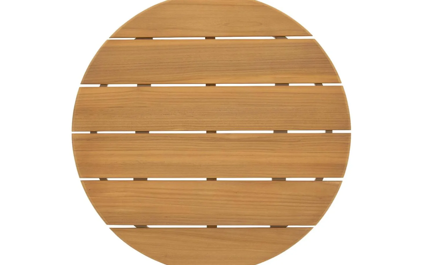 Compacte ronde buitensalontafel Bari heeft een klassiek, strak silhouet en een warme naturel teakkleur. De teak olie afwerking benadrukt de houttekening en houdt de kleur warm. Een tijdloze keuze voor elk terras of balkon.