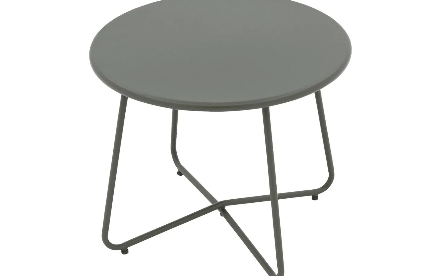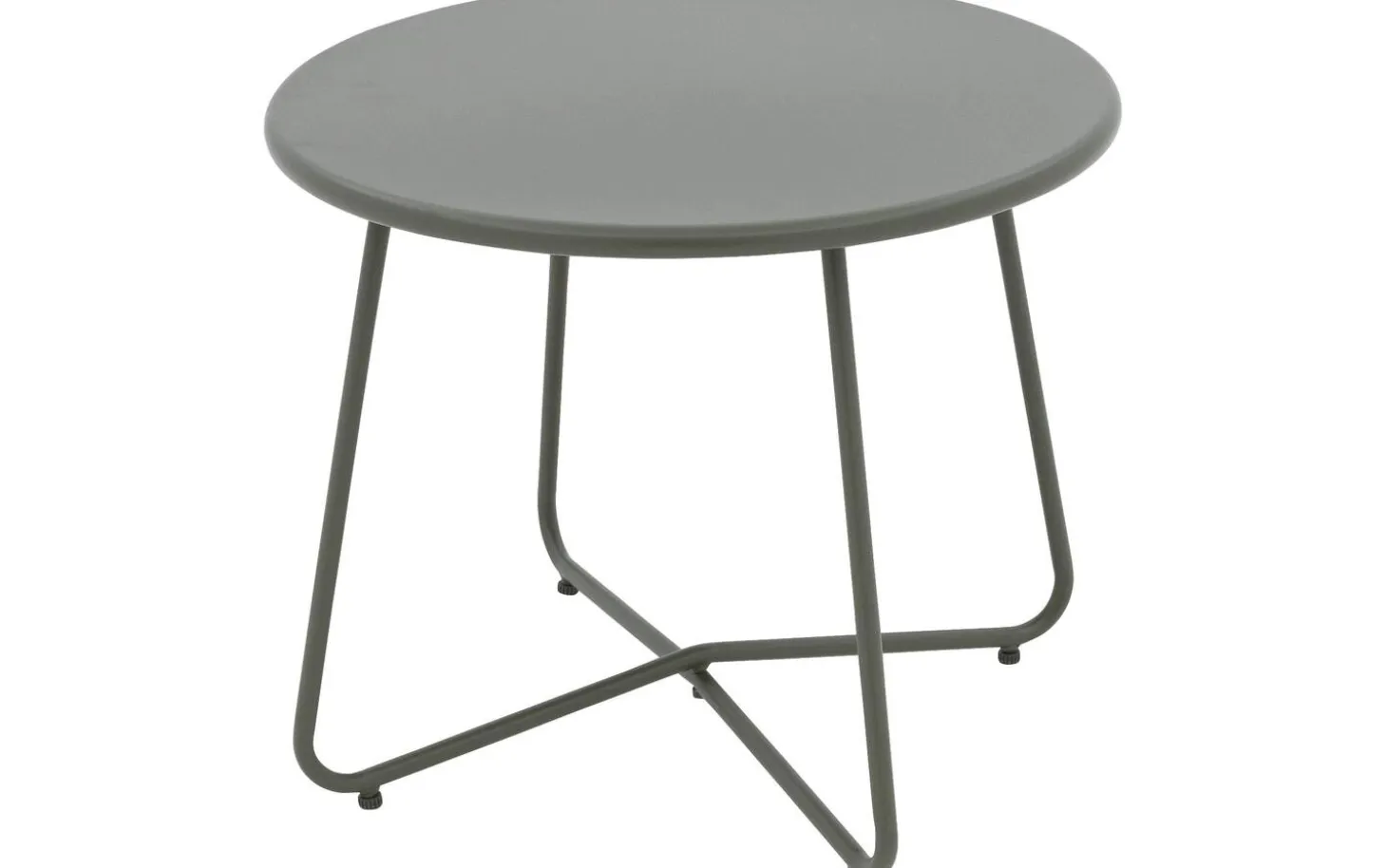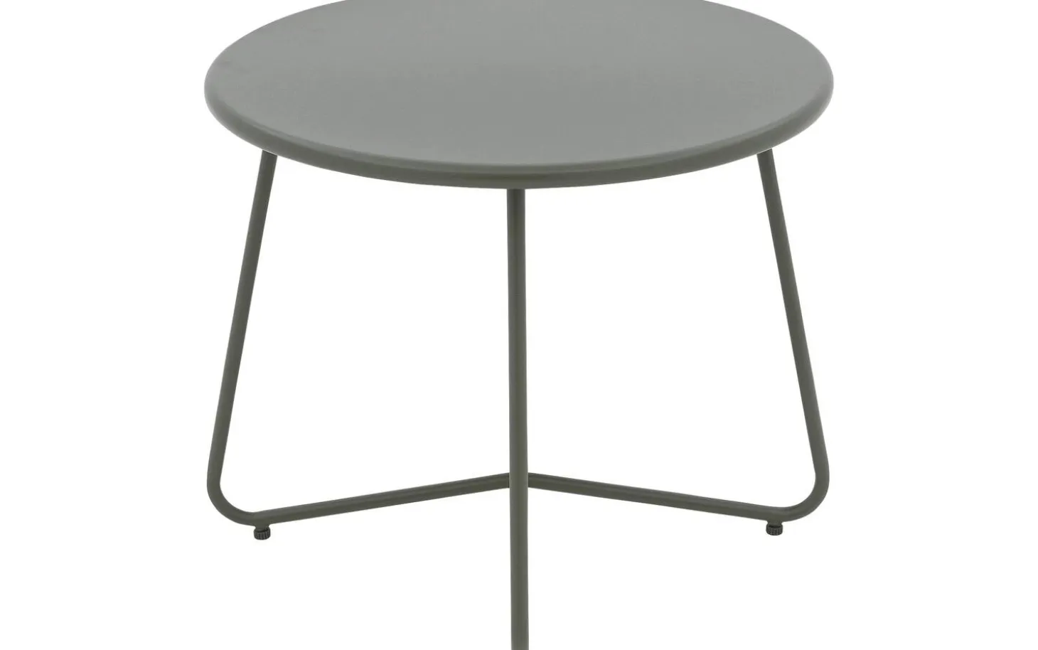 Die runde Tischplatte und das Gestell sind beide in grünem Aluminium mit einer hochwertigen Pulverbeschichtung ausgeführt. Diese Veredelung verleiht dem Metall eine matte, luxuriöse Ausstrahlung und schützt vor Kratzern und Witterungseinflüssen.