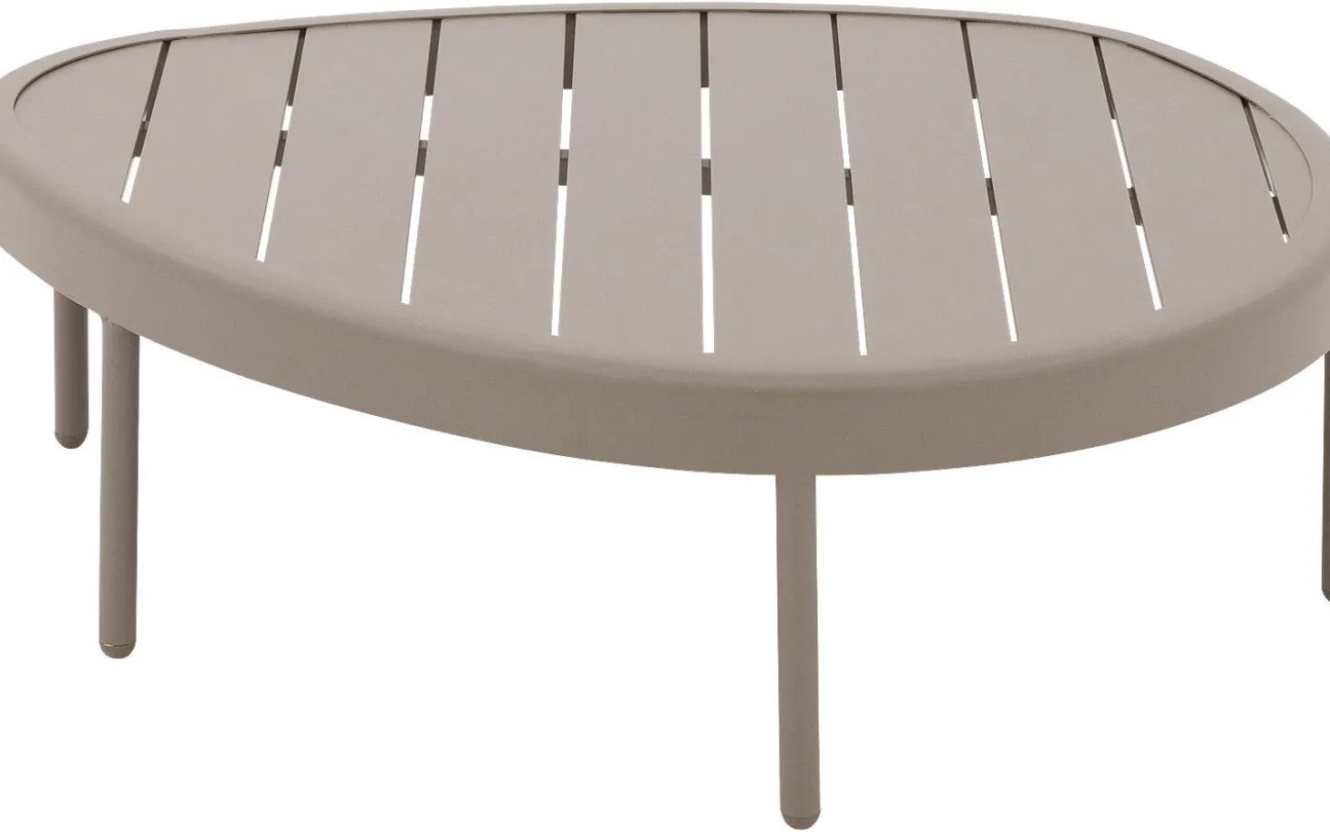 Bruine salontafel voor buiten Pien brengt warmte en functionaliteit naar je terras of tuin. Deze compacte tuintafel van aluminium combineert een stoer industrieel design met praktisch gebruiksgemak. De geborstelde taupe afwerking geeft het aluminium een natuurlijke, rustige uitstraling die mooi past bij verschillende tuinstijlen.