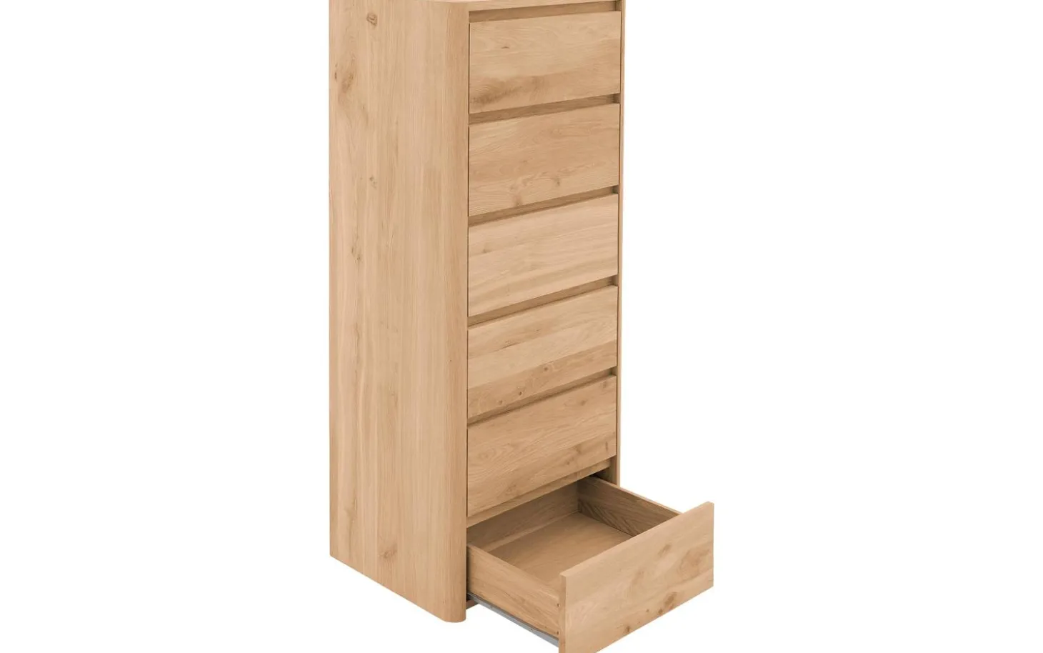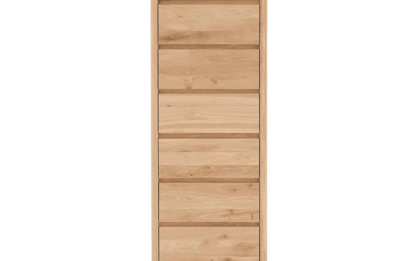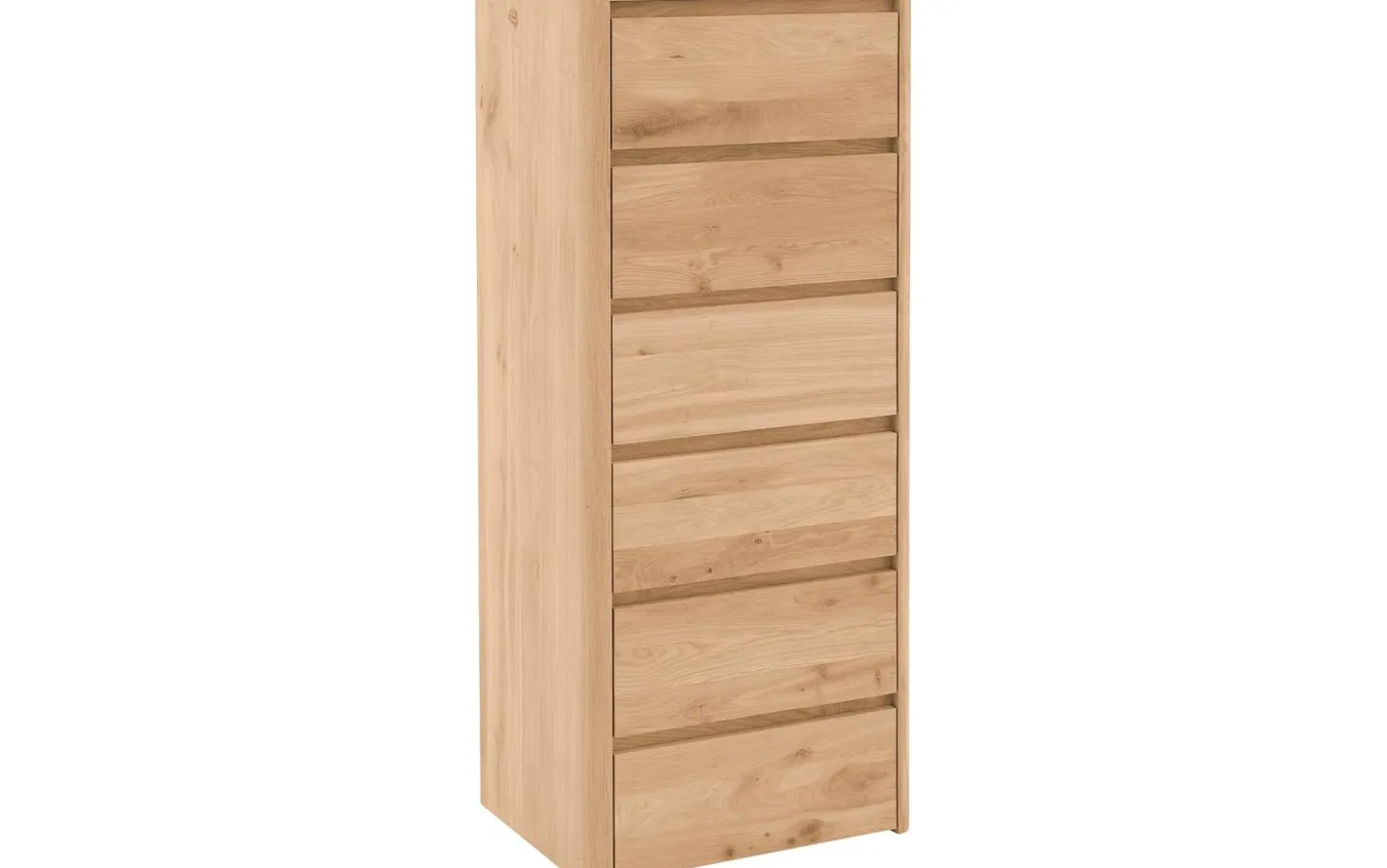 Sie suchen einen Schubladenschrank mit natürlicher Optik und viel Stauraum? Dann ist die Kommode Bibi genau das richtige Modell für Sie! Diese ansprechende Kommode aus Eichenholz verfügt über gleich sechs praktische Schubladen, in denen Sie Ihre Siebensachen ordentlich aufbewahren können. Die Maserung und die Farbschattierungen des Holzes verleihen der Kommode Bibi eine natürliche Optik. Eichenholz ist außerdem ein langlebiges Produkt, sodass Sie jahrelang Freude an Bibi haben werden. Kombinieren Sie die Kommode Bibi mit anderen Möbeln aus der Serie Bibi, um auch den Rest Ihres Schlafzimmers in dieses natürliche und ruhige Ambiente zu hüllen.