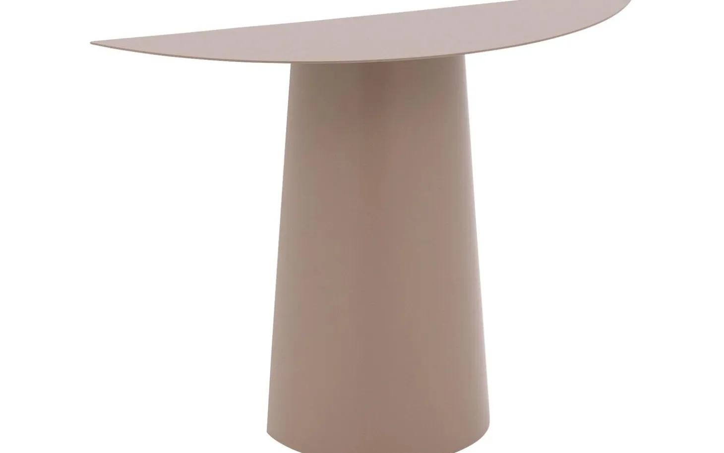 Beistelltisch Roos bringt moderne Eleganz in Ihr Wohnzimmer. Dieser taupefarbene Beistelltisch aus Metall mit einer Breite von 101 cm hat eine klare, minimalistische Ausstrahlung, die perfekt zu zeitgenössischen Interieurs passt. Der Säulenfuß sorgt für einen schwebenden Effekt, während die Pulverbeschichtung dem Metall eine luxuriöse Verarbeitung verleiht. Ideal neben Ihrem Sofa oder als stilvolle Ablagefläche.