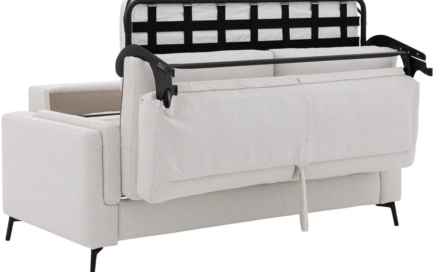 Slaapbank Silkeborg is overdag een trendy bank en ’s avonds in een handomdraai een comfortabel (logeer)bed. Een kleinere woning vraagt om multifunctionele meubels. Slaapbank Silkeborg is ideaal als je een kleine ruimte optimaal wilt benutten of regelmatig logées over de vloer krijgt. De stoffen slaapbank op pootjes heeft een moderne uitstraling en past daardoor perfect in ieder interieur.