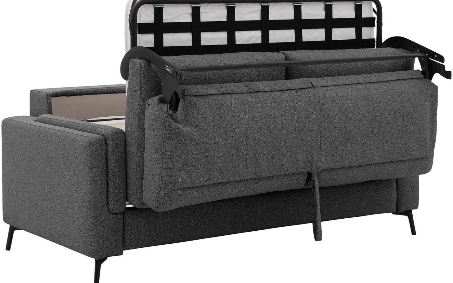 Slaapbank Silkeborg is overdag een trendy bank en ’s avonds in een handomdraai een comfortabel (logeer)bed. Een kleinere woning vraagt om multifunctionele meubels. Slaapbank Silkeborg is ideaal als je een kleine ruimte optimaal wilt benutten of regelmatig logées over de vloer krijgt. De stoffen slaapbank op pootjes heeft een moderne uitstraling en past daardoor perfect in ieder interieur.