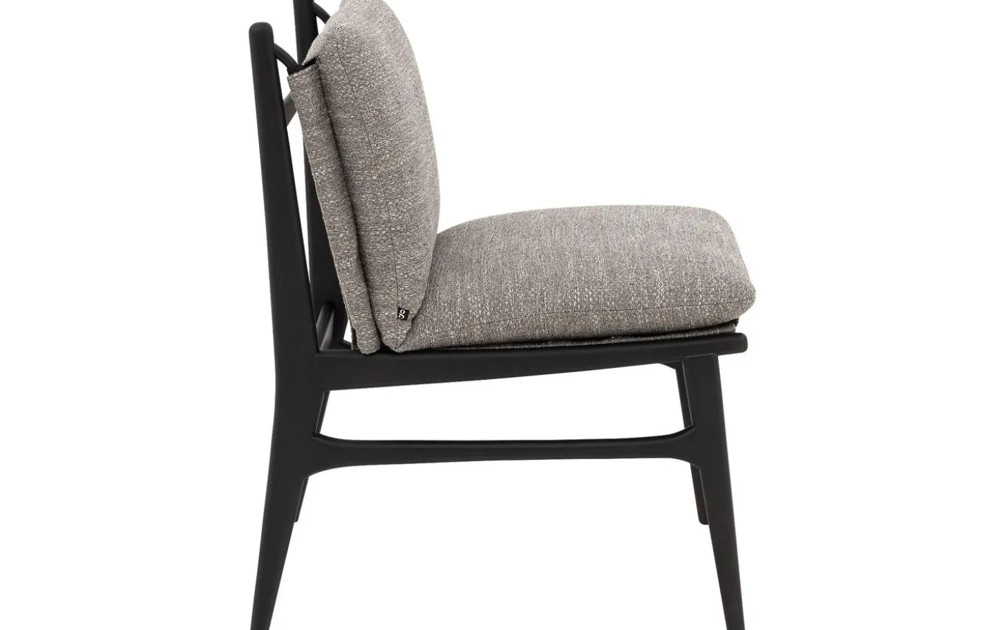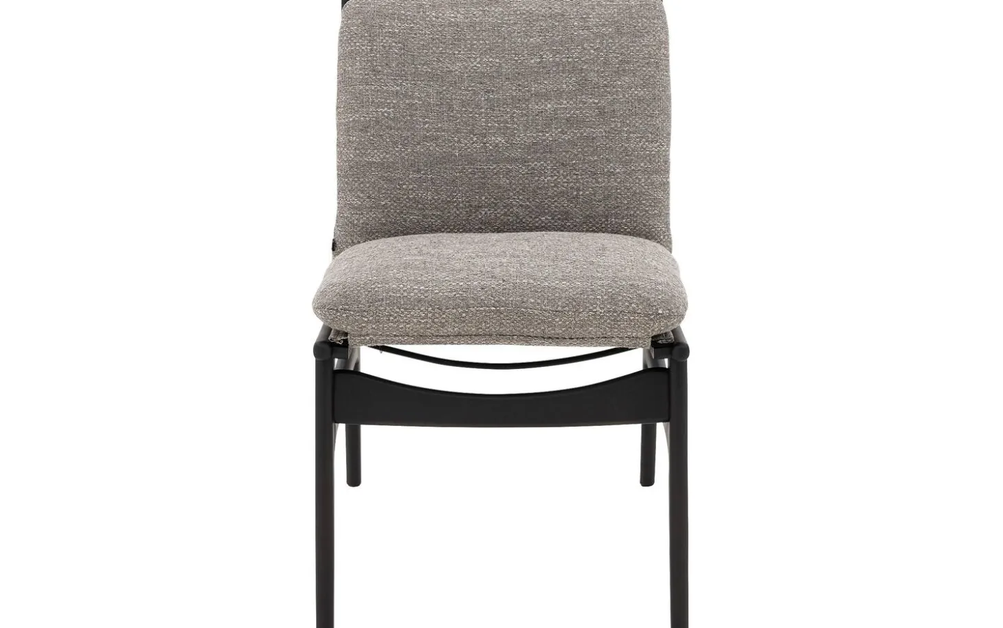 De grofgeweven lichtgrijze stof heeft een mooie textuur die warmte en karakter toevoegt aan je interieur. Door het gemeleerde patroon past deze eetstoel mooi in verschillende woonstijlen, van modern tot landelijk. De stof is geschikt voor dagelijks gebruik, zodat je lang van je aankoop kunt genieten.