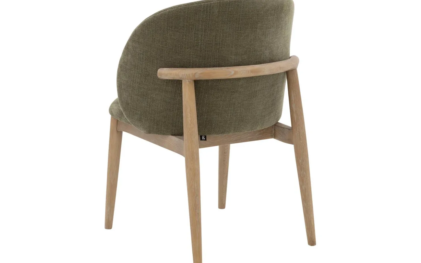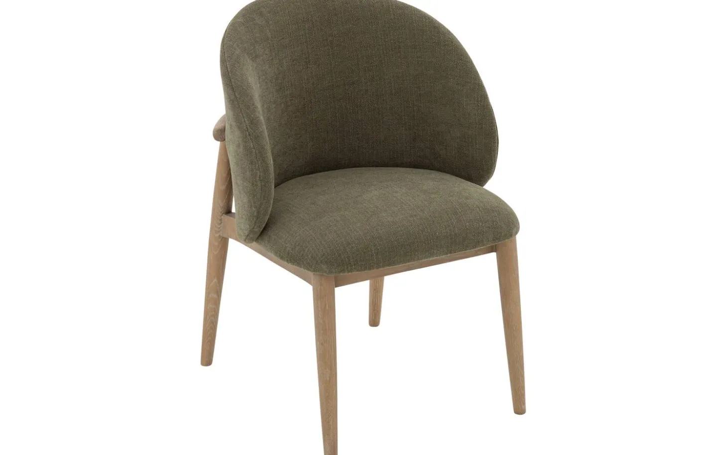 Bekijk eetkamerstoel Diederik met armleuning. Deze groene eetkamerstoel combineert stijlvol landelijk design met praktisch comfort. De fijn geweven olijfgroene stof geeft de stoel een warme, natuurlijke uitstraling die mooi past in verschillende interieurstijlen. De lichtbruine geschuurde poten met whitewash zorgen voor een sfeervolle afwerking.