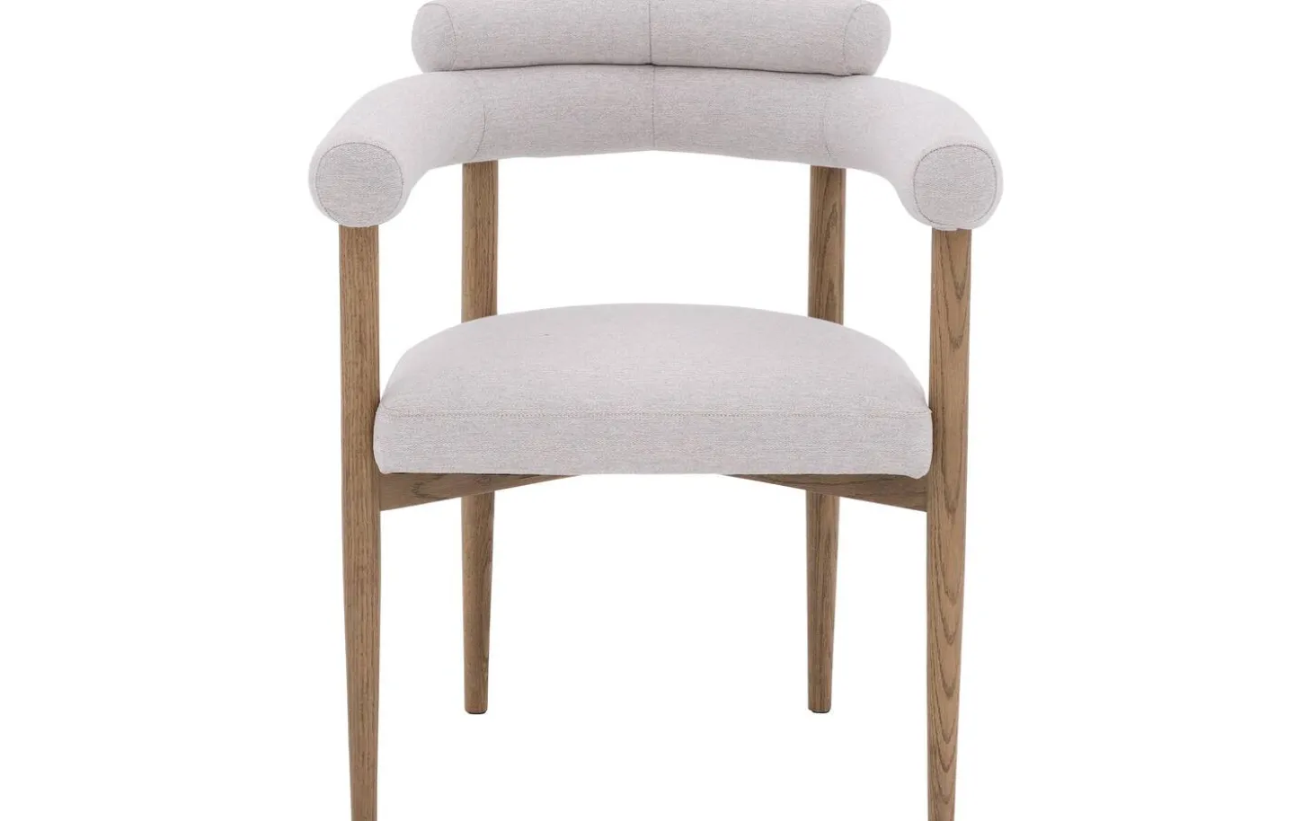 Entdecken Sie den grauen Esszimmerstuhl Splinter mit Armlehne aus fein gewebtem Stoff. Dieser elegante Stuhl bietet nicht nur eine einzigartige runde Formgebung, sondern verbindet auch Komfort mit einem attraktiven Design. Die Kombination aus dem hellgrauen fein gewebten Stoff und den cognacfarbenen Eschenbeinholz-Beinen verleihen diesem Esszimmerstuhl eine schicke und moderne Ausstrahlung, perfekt für jedes Interieur.