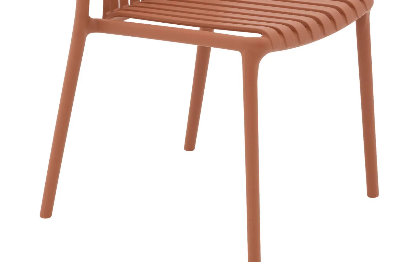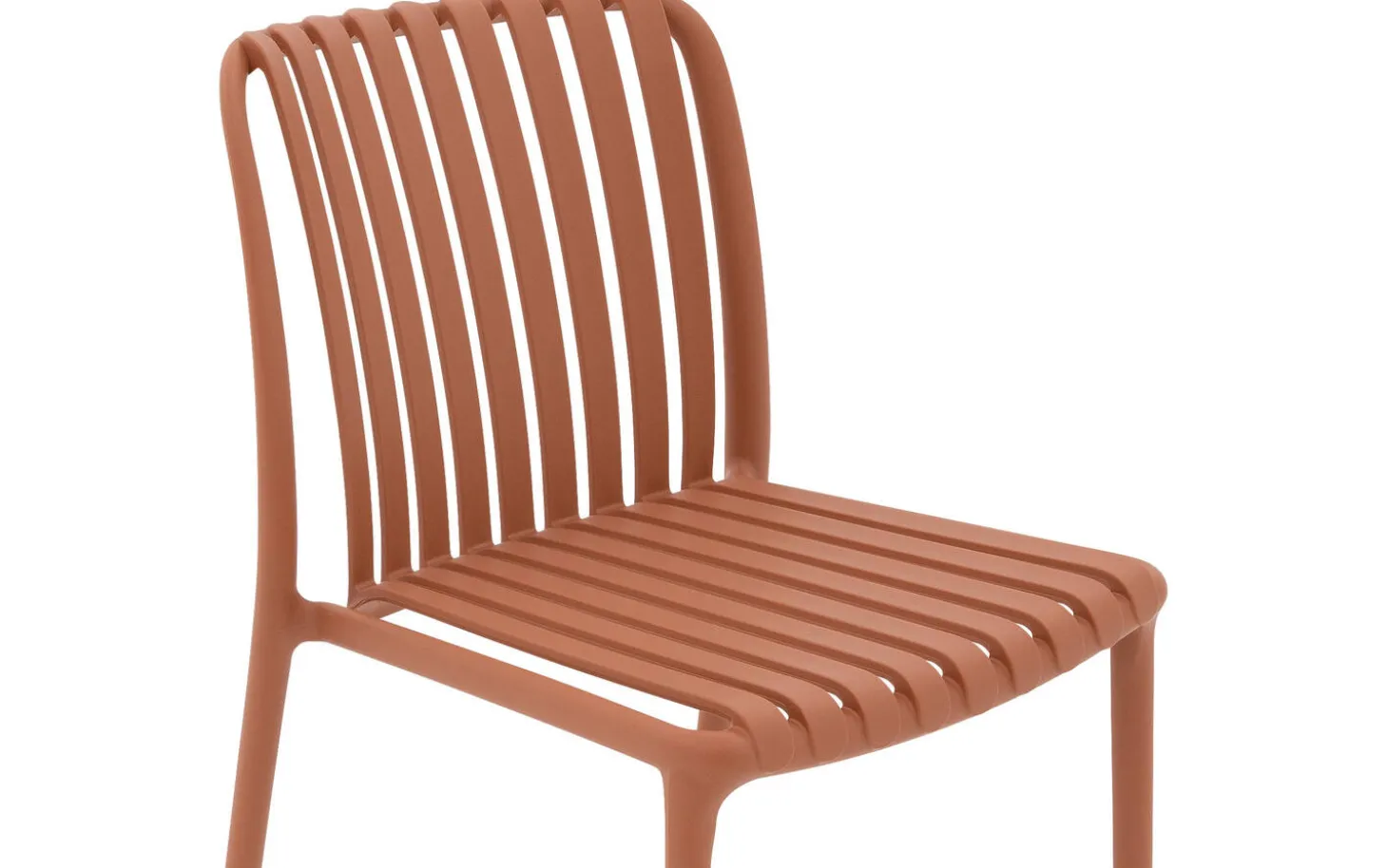 Stijlvolle details van deze oranje kunststof tuinstoel