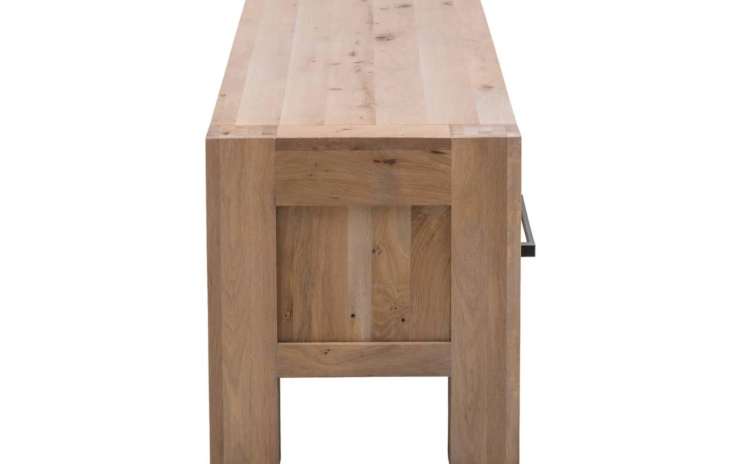 Das Eichenholz ist mit einer schützenden Öl-Veredelung behandelt, die das Holz weniger empfindlich gegen Flüssigkeiten macht. So behält TV-Möbel Roots seine natürliche Ausstrahlung und hält jahrelang.