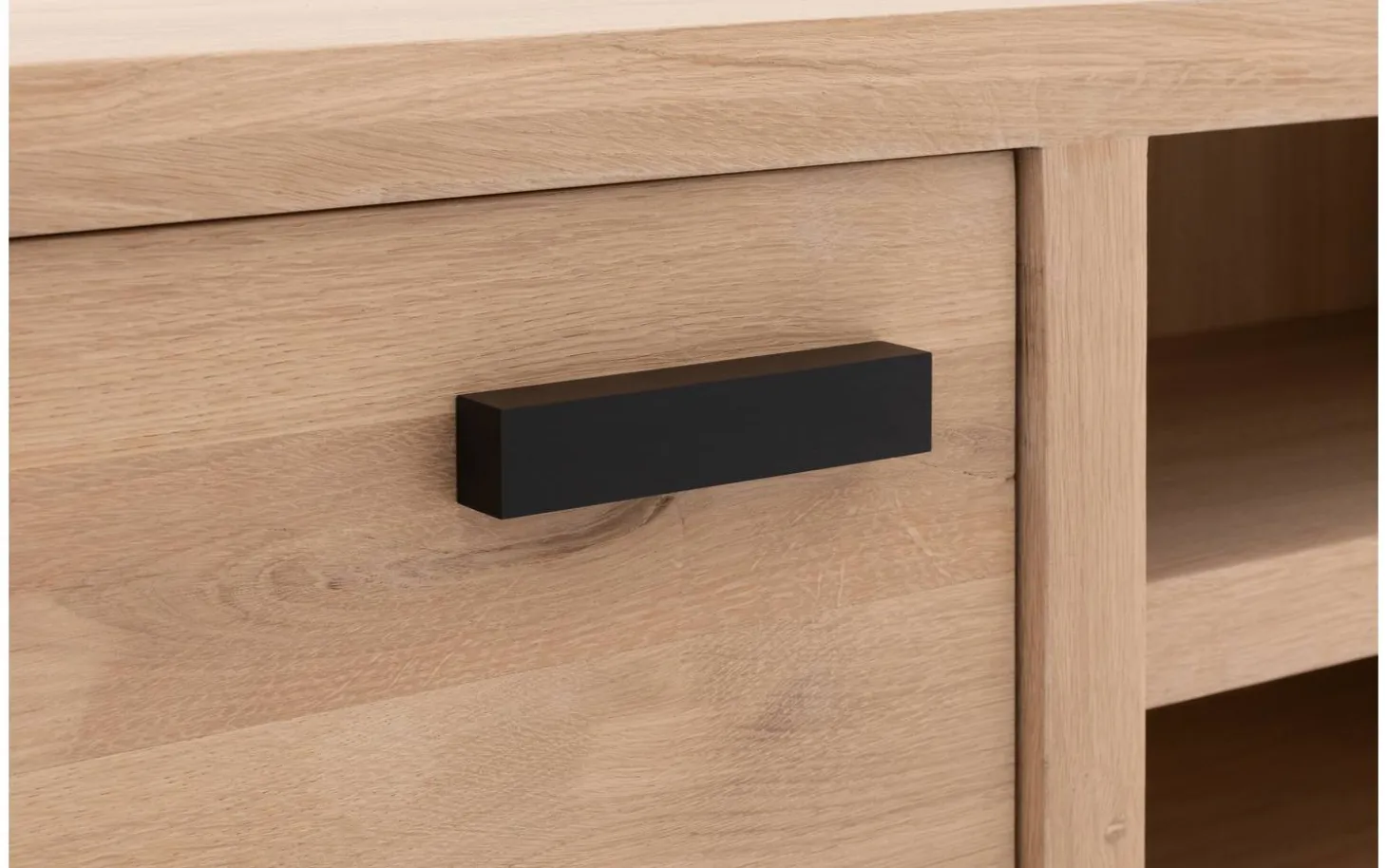 Stilvolle Details dieses TV-Möbels aus heller Eiche