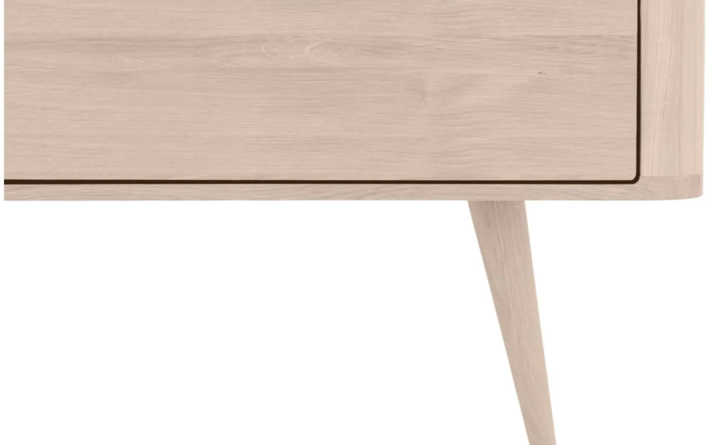 Das nachhaltige Eichenholz mit lackierter cremeweißer Verarbeitung verleiht TV Möbel Bjarte seinen natürlichen Charakter. Die Soft-Closing-Türen und Schublade schließen immer sanft, auch wenn Sie sie versehentlich zudrücken. So bleibt Ihr Möbel jahrelang schön.