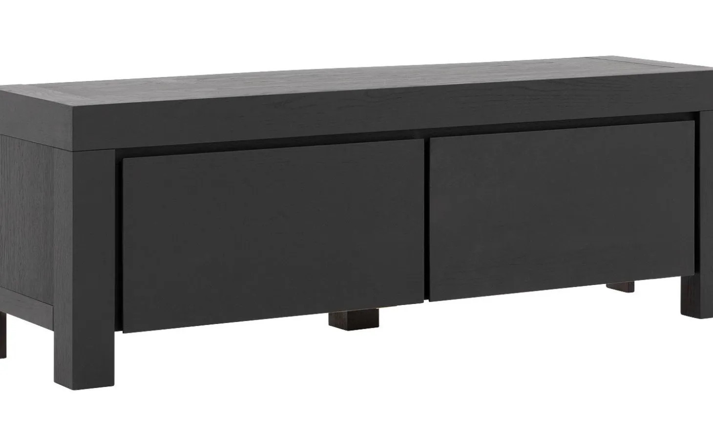 TV meubel Clear maakt indruk met zijn landelijke uitstraling en stoere zwarte afwerking. Het eiken met soft touch lak zorgt voor een matte uitstraling waarbij de natuurlijke houtnerf mooi zichtbaar blijft. Perfect voor wie houdt van een warme, authentieke sfeer in huis.