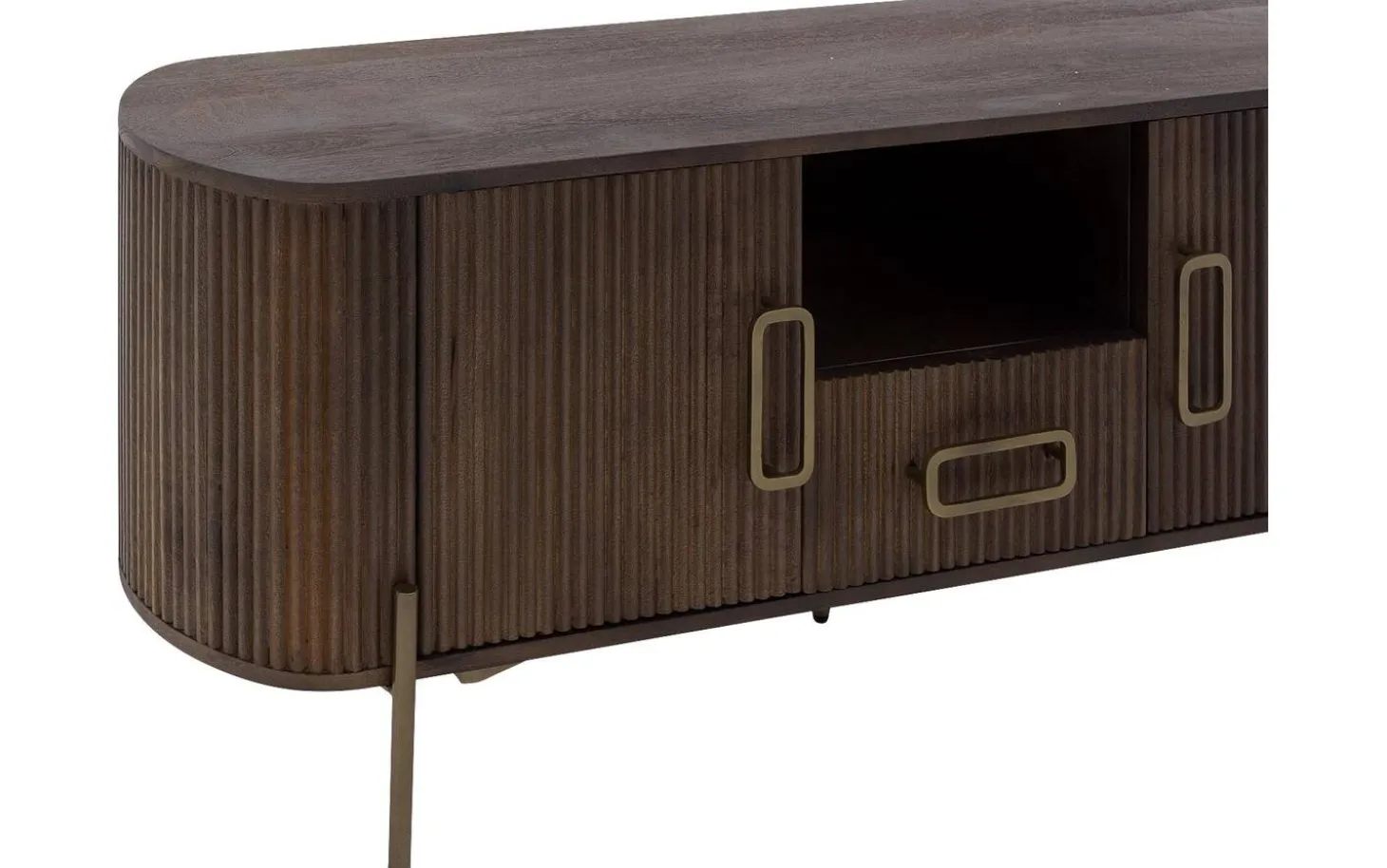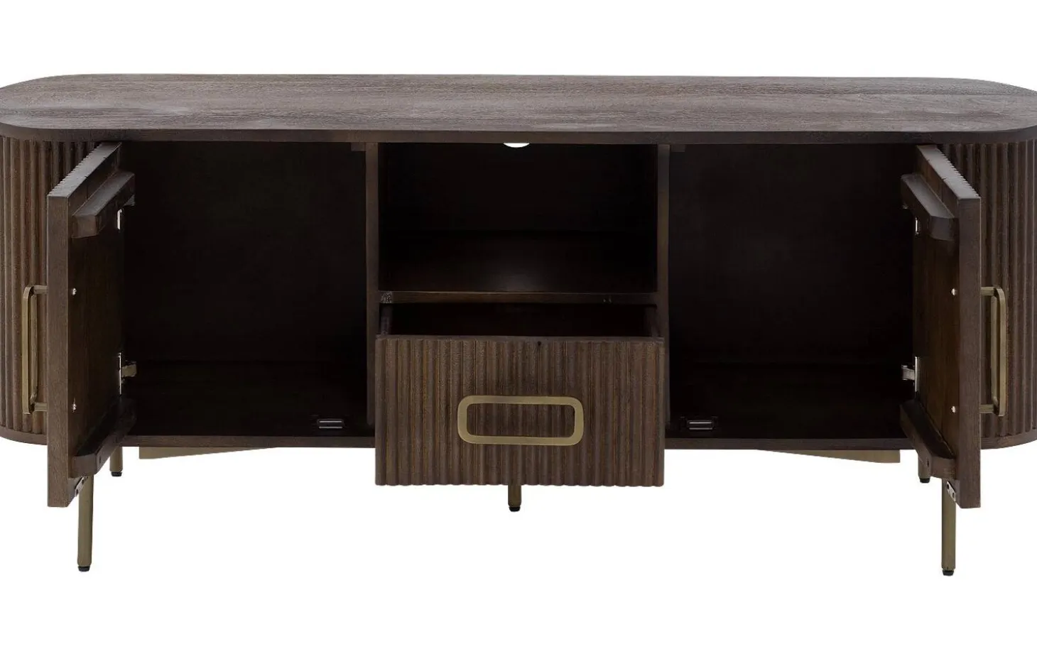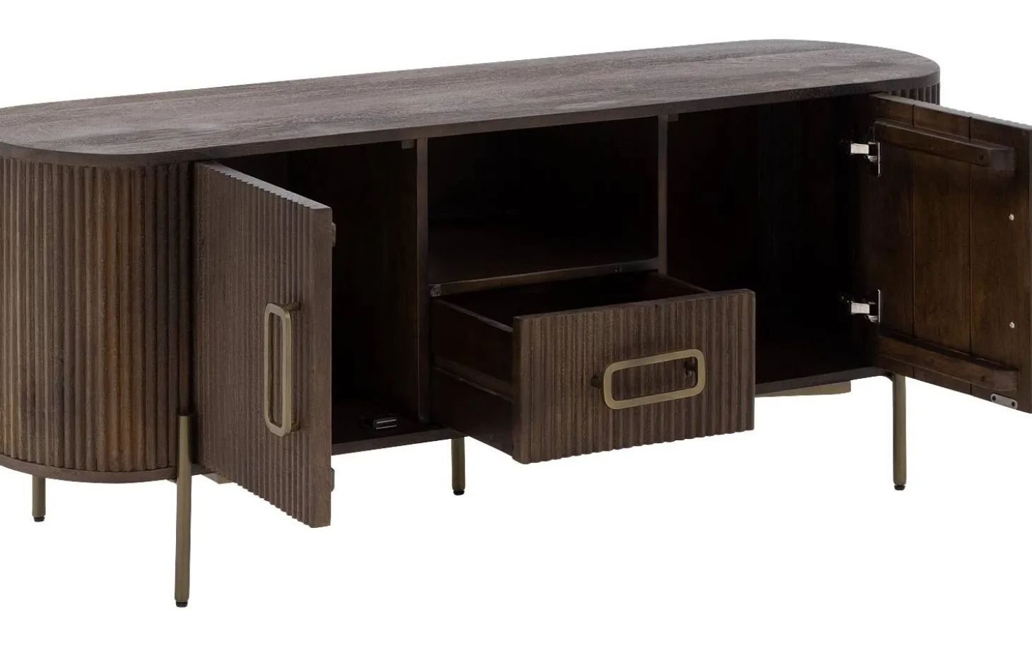 Dressoir Dagmar combineert praktisch opbergen met stijlvol design. Dagmar is gemaakt van hoogwaardig mangohout en uitgevoerd in een warme, donkerbruine kleur. De soft touch lakafwerking geeft bescherming aan het hout én benadrukt de natuurlijke houtstructuur. Het dressoir staat op slanke pootjes en is voorzien van subtiele handgrepen in een antiek gouden kleur, die een elegante touch toevoegen. Met zijn tijdloze look en hoogwaardige afwerking is dressoir Dagmar een prachtige toevoeging aan elk interieur, en biedt hij volop opbergruimte zonder in te leveren op stijl.