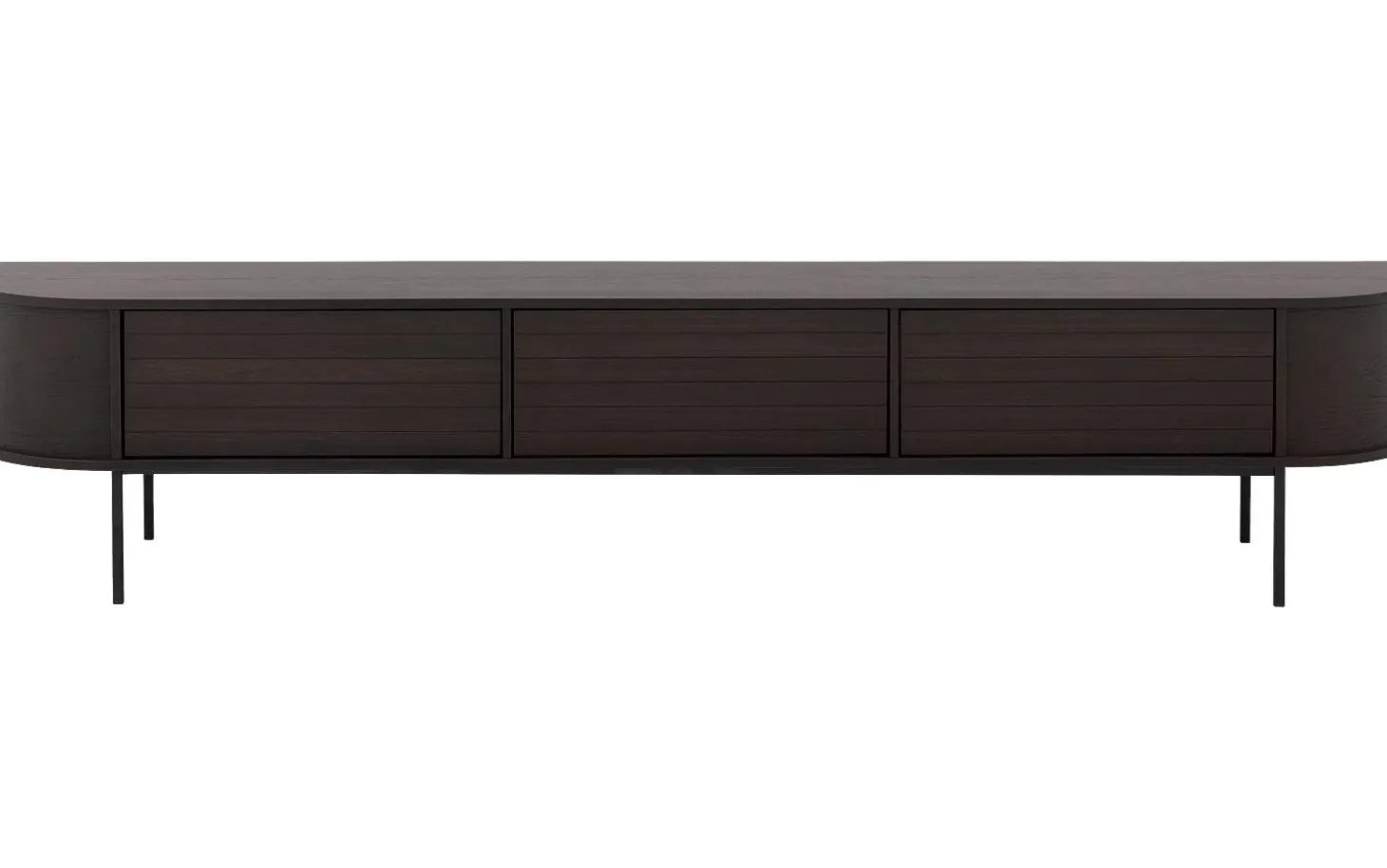 TV-Möbel Delfina strahlt Wärme aus durch die wunderschöne Eiche mit Espresso Soft Touch Lack. Die vertikale Struktur der Türen verleiht einen spielerischen Effekt, während die abgerundeten Ecken für eine weiche, einladende Ausstrahlung sorgen. Perfekt für ein modernes Interieur mit Charakter.