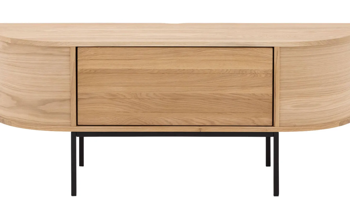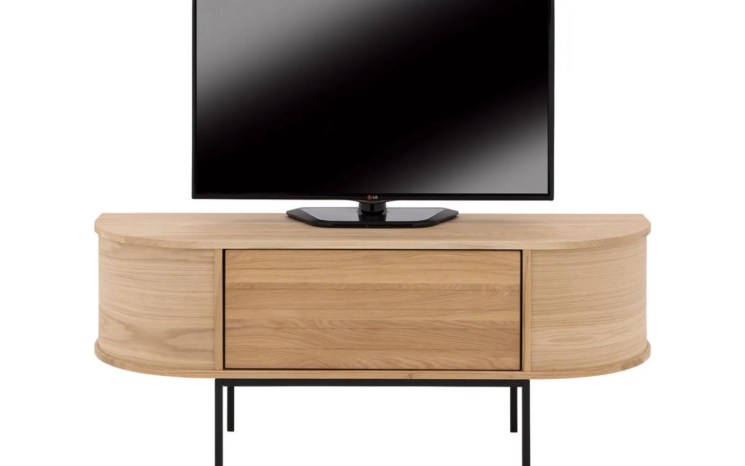 TV-Möbel Delfina kombiniert die Wärme von Eiche mit moderner Funktionalität. Die sanften Rundungen und die vertikal gestreifte Tür verleihen diesem niederländischen Design eine einzigartige Ausstrahlung. Mit praktischer Push-to-Open-Funktion und optionalen Füßen schaffen Sie genau den Look, der zu Ihrem Interieur passt.