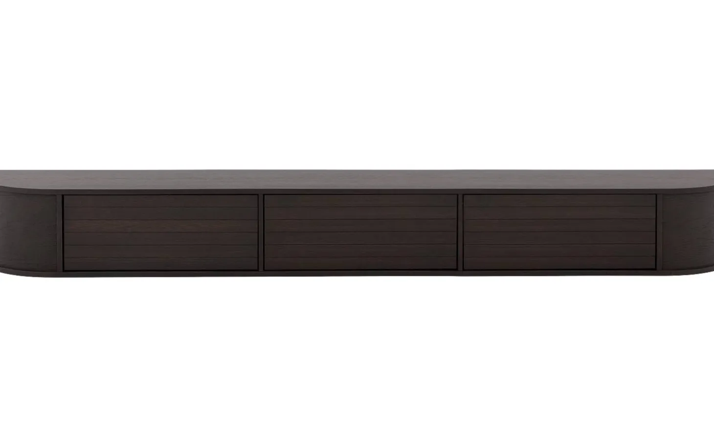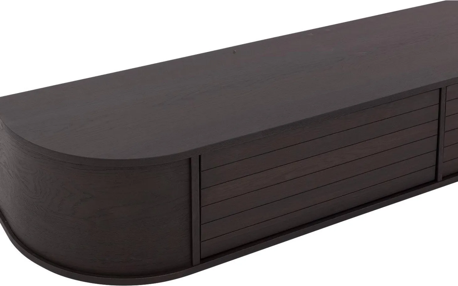 Das TV-Möbel Delfina fällt durch seine sanften Rundungen und warme Eichenfarbe auf. Das hängende Design verleiht Ihrem Wohnzimmer eine moderne, luftige Ausstrahlung. Die vertikal gestreiften Türen und subtilen schwarzen Akzente machen dieses Möbel zu einem echten Blickfang an der Wand.