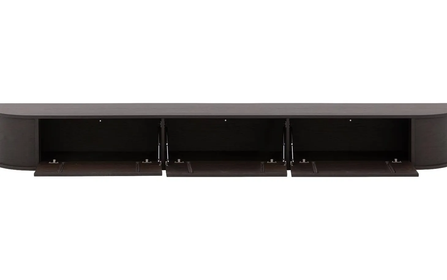 Der Soft-Touch-Lack in Espresso-Farbe verleiht diesem TV-Möbel aus Eiche eine reiche, warme Ausstrahlung. Das Push-to-open-System sorgt für klare Linien ohne Griffe – einfach kurz drücken und die Türen öffnen sich geschmeidig. Die drei Klappen bieten ausreichend Platz für Ihre TV-Geräte.