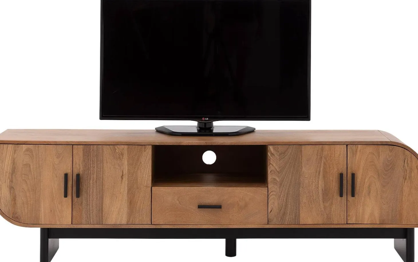 Achter de vier deuren vind je volop ruimte voor je apparatuur, spelcomputers en andere spullen die je liever uit het zicht houdt. In het open vak kun je je decoder of spelcomputer kwijt, zodat de afstandsbediening altijd werkt. De handige kabeldoorvoer in de achterwand zorgt ervoor dat alle snoeren netjes weggewerkt blijven.