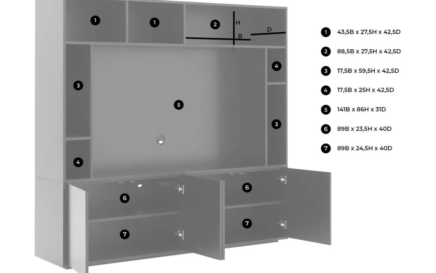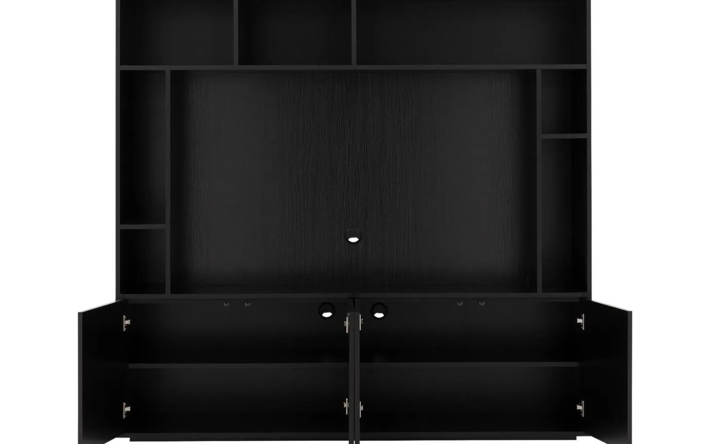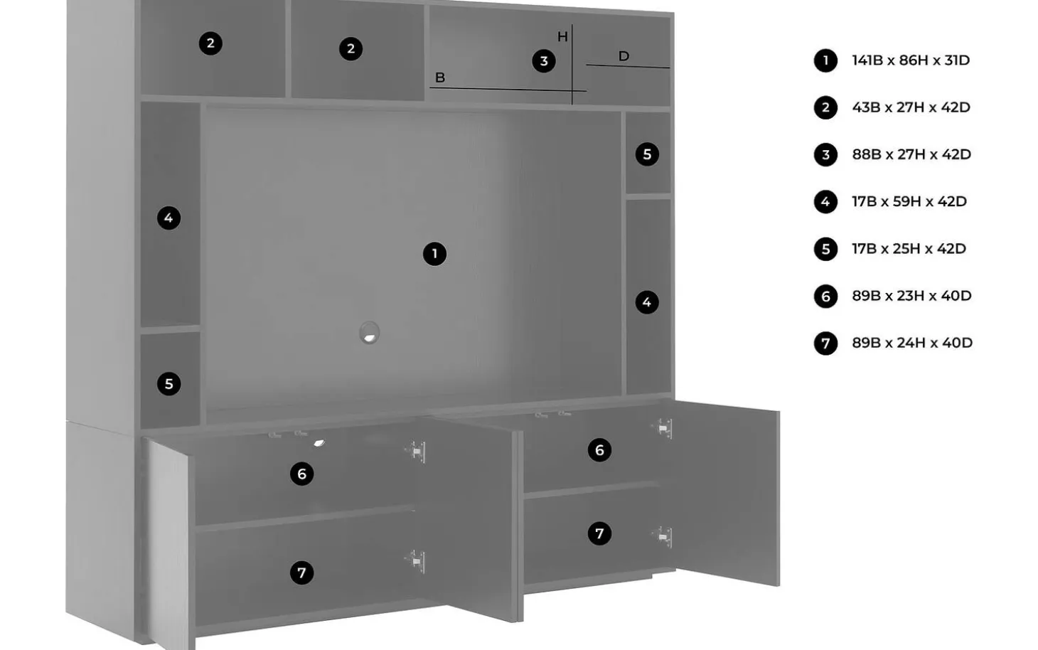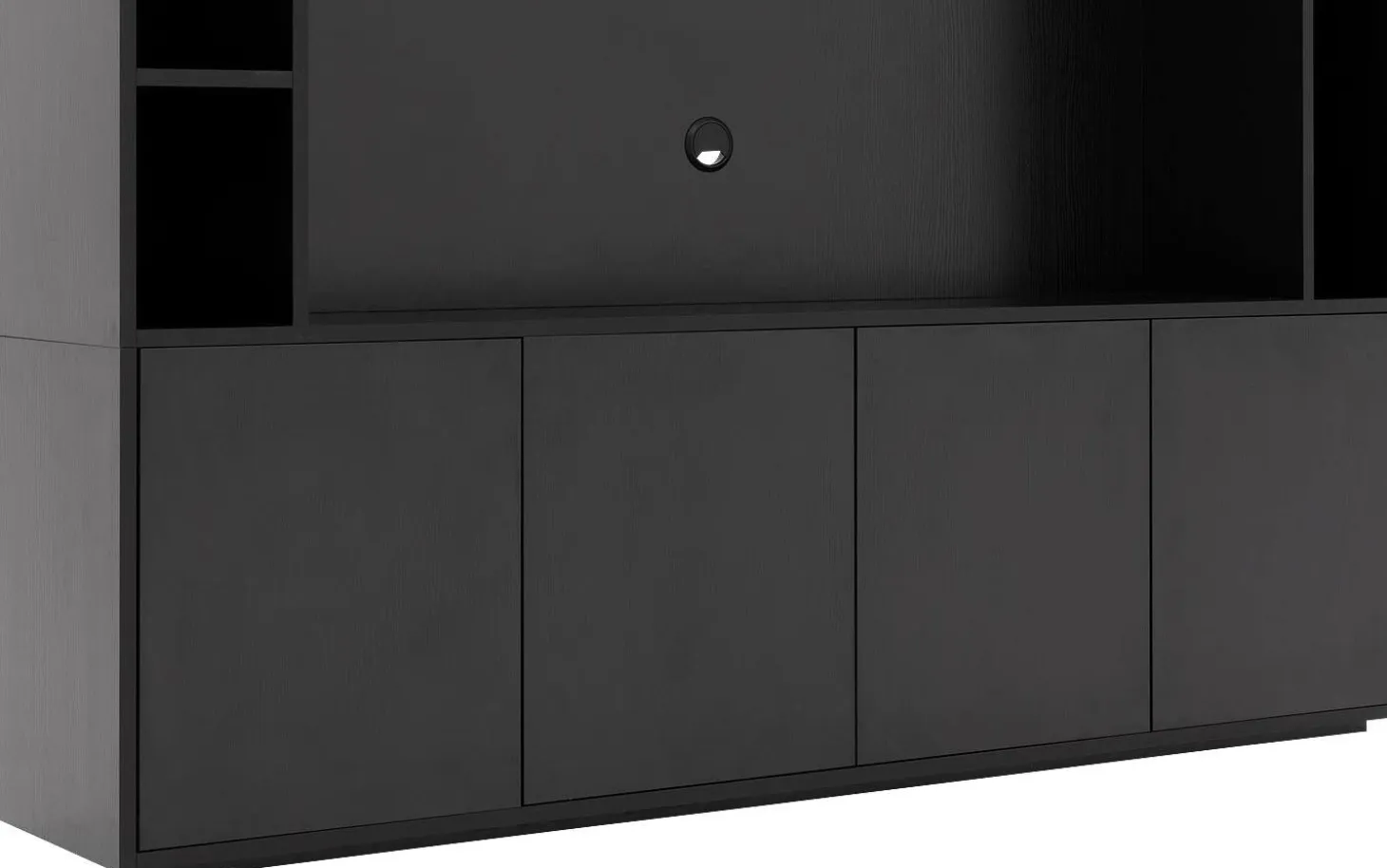 Ihren Fernseher können Sie sowohl im Möbel aufhängen als auch stehend darauf platzieren. Die geräumigen Fächer (Höhe 86 cm, Breite 141 cm) bieten genügend Platz für Ihre Geräte, während der geschlossene Stauraum für eine aufgeräumte Ausstrahlung in Ihrem Wohnzimmer sorgt.