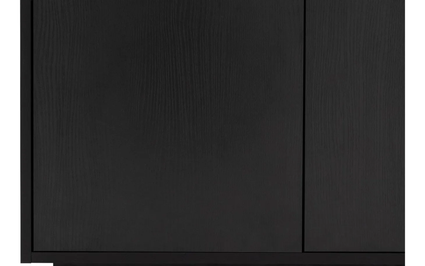 Das TV-Möbel Madrid verleiht Ihrem Wohnzimmer sofort eine moderne und organisierte Ausstrahlung. Das geradlinige Design ohne Griffe sorgt für Ruhe in Ihrer Einrichtung, während die schwarze Kunststoffoberfläche mit Holzstruktur für Wärme und Charakter sorgt. Perfekt geeignet für Fernseher bis 55 Zoll.
