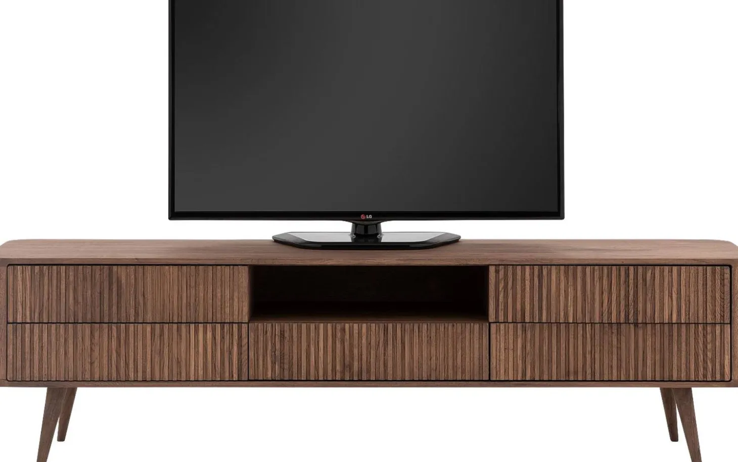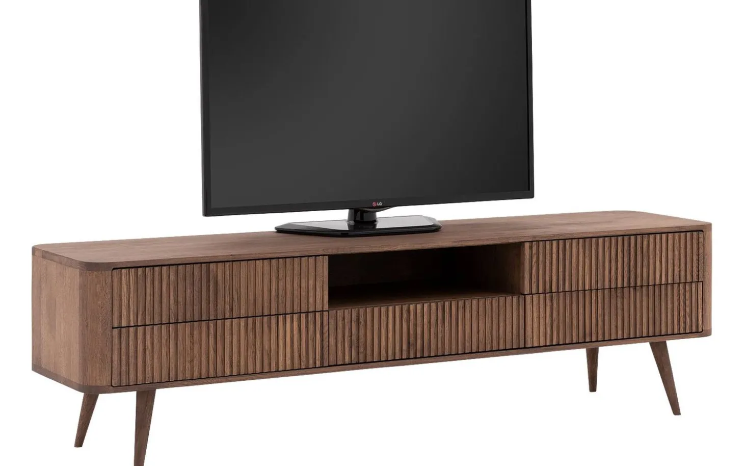 Mit einer Breite von 180 cm bietet Seppe Platz für größere Fernseher. Das offene Fach (54 x 12 x 39 cm) ist ideal für Ihren Decoder oder Ihre Soundbar, während die fünf Schubladen alle anderen Geräte und Accessoires ordentlich außer Sichtweite halten.