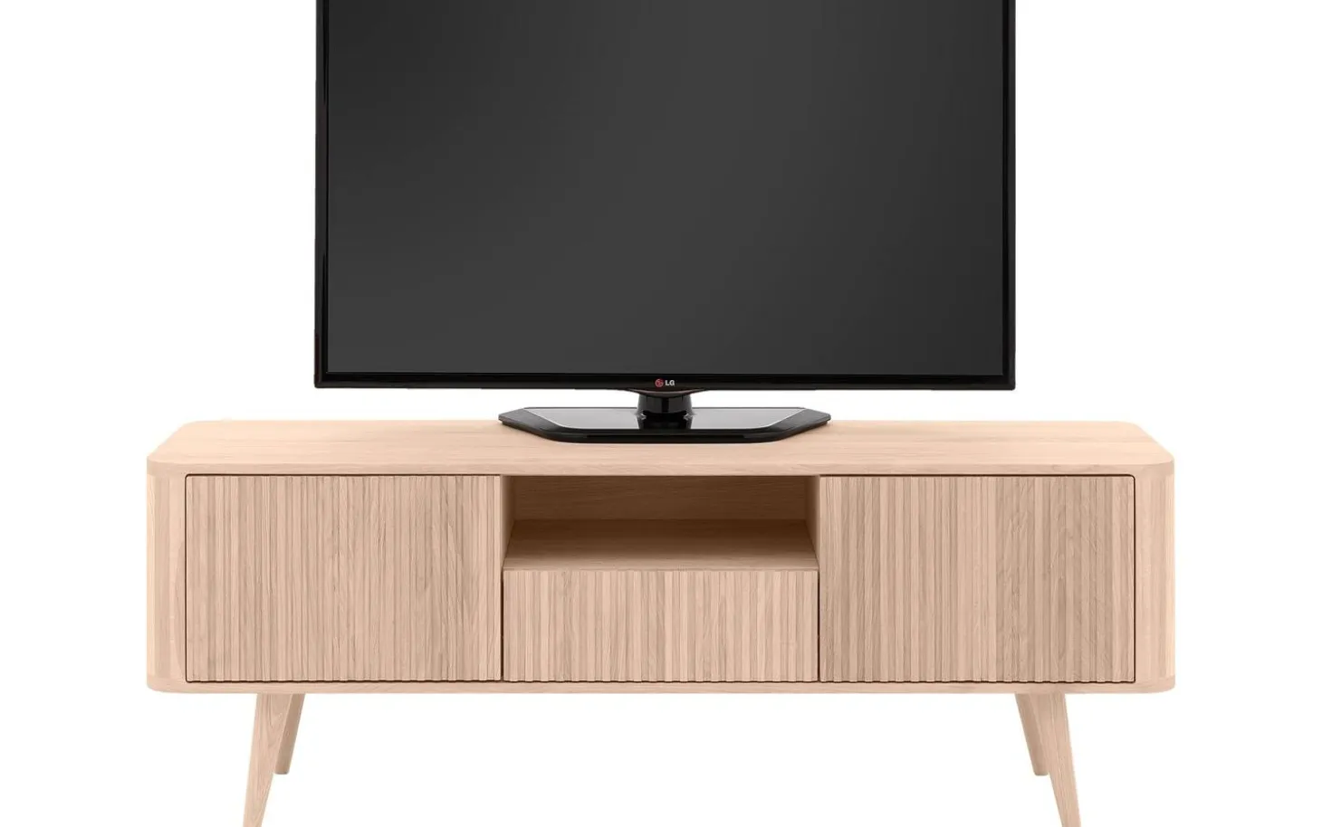 Das offene Mittelfach (41 x 13 x 40 cm) ist perfekt für Ihren Receiver oder Ihre Soundbar, während die geräumige Schublade (37 x 8 x 31 cm) Fernbedienungen und Kabel ordentlich verstaut. Die geschlossenen Fächer (43 x 26 x 39 cm) bieten zusätzlichen Stauraum für alles, was Sie aus dem Blickfeld haben möchten.