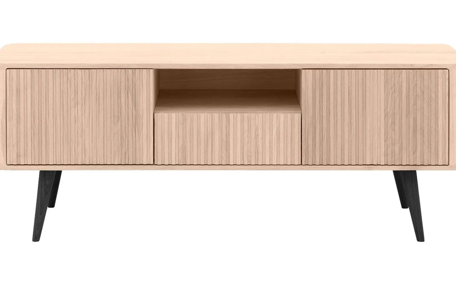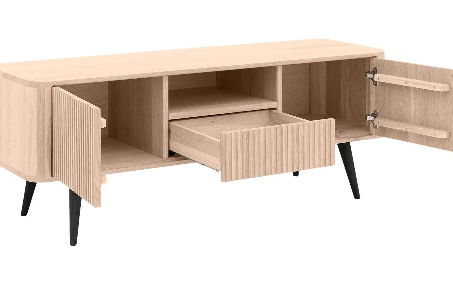 Mit seiner cleveren Aufteilung bietet Seppe Platz für alles: das offene Fach (41 x 13 x 40 cm) für Ihren TV-Receiver, zwei geschlossene Fächer (43 x 26 x 39 cm) für Geräte und eine handliche Schublade (37 x 8 x 31 cm) für Fernbedienungen und Kabel. Kombinieren Sie es mit anderen Möbeln aus derselben Serie für ein komplettes Ensemble.