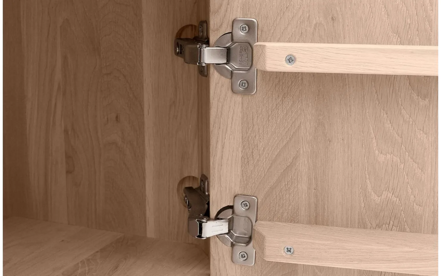 Die lackierte Verarbeitung schützt das Eichenholz vor Flecken und erhält die natürliche Ausstrahlung. Das Push-to-Open-System sorgt für einfache Bedienung – einfach drücken und die Türen oder Schublade öffnen sich von selbst. Perfekt für einen eleganten, grifflosen Look.