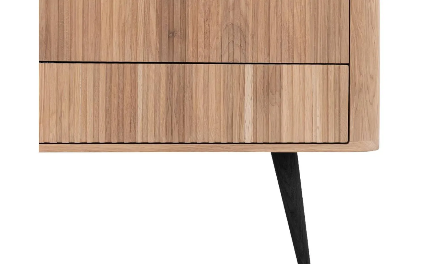Die weiße Öl-Veredelung schützt das Eichenholz vor Flecken und bewahrt gleichzeitig die natürliche Ausstrahlung. Das clevere Push-to-Open-System sorgt für klare Linien ohne Griffe – ein einfacher Druck öffnet jede Schublade mühelos.