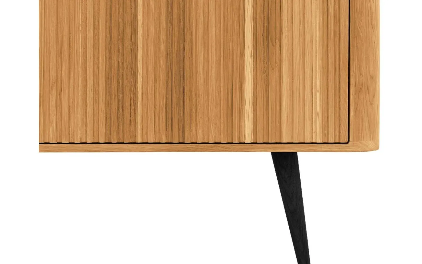 Der sanfte helle Lack schützt das Eichenholz und reduziert Flecken, während die natürliche Holzstruktur sichtbar bleibt. Das clevere Push-to-Open-System sorgt für klare Linien ohne Griffe – einfach kurz drücken und die Tür oder Schublade öffnet sich von selbst.