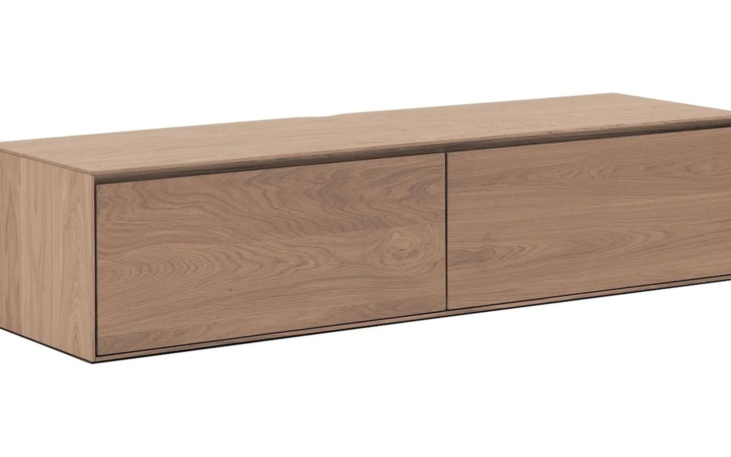 TV-Möbel Vic strahlt pure Eleganz aus durch seine moderne schwebende Montage und klare Formgebung. Das Eichenfurnier mit verwittertem Soft-Touch-Lack verleiht eine warme, natürliche Ausstrahlung, die perfekt zu sowohl modernen als auch ländlichen Einrichtungen passt. Ein echter Blickfang an der Wand.