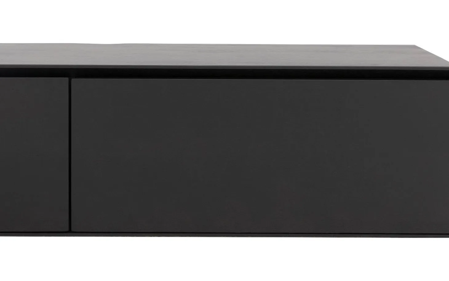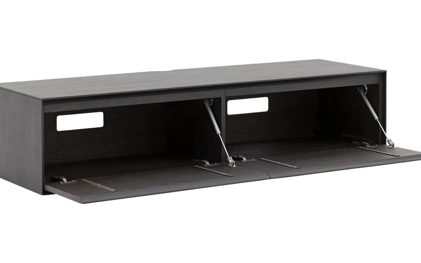 Dieses graue Eichen-TV-Möbel bringt italienisches Design direkt in Ihr Wohnzimmer. Vic kombiniert elegante klare Linien mit cleveren Aufbewahrungsmöglichkeiten hinter zwei Klappen mit hydraulischer Öffnung. Perfekt schwebend aufzuhängen oder stehend zu platzieren – Sie bestimmen, was am besten passt.