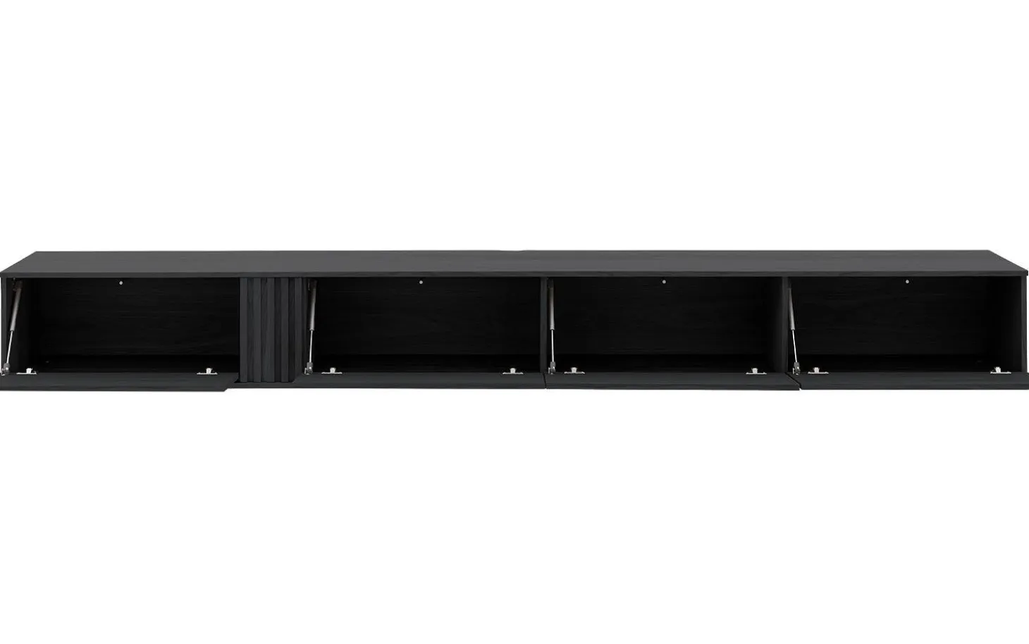 TV-Möbel Viola bringt klare Eleganz in Ihr Wohnzimmer mit seiner modernen grauen Eichen-Ausstrahlung. Dieses hängende TV-Möbel mit 300 cm Breite bietet großzügigen Stauraum hinter vier stilvollen Klappen mit Push-to-Open-System. Die subtile graue Holzoptik und schlanken Abmessungen verleihen Ihrem Interieur direkt eine luxuriöse, aufgeräumte Ausstrahlung.