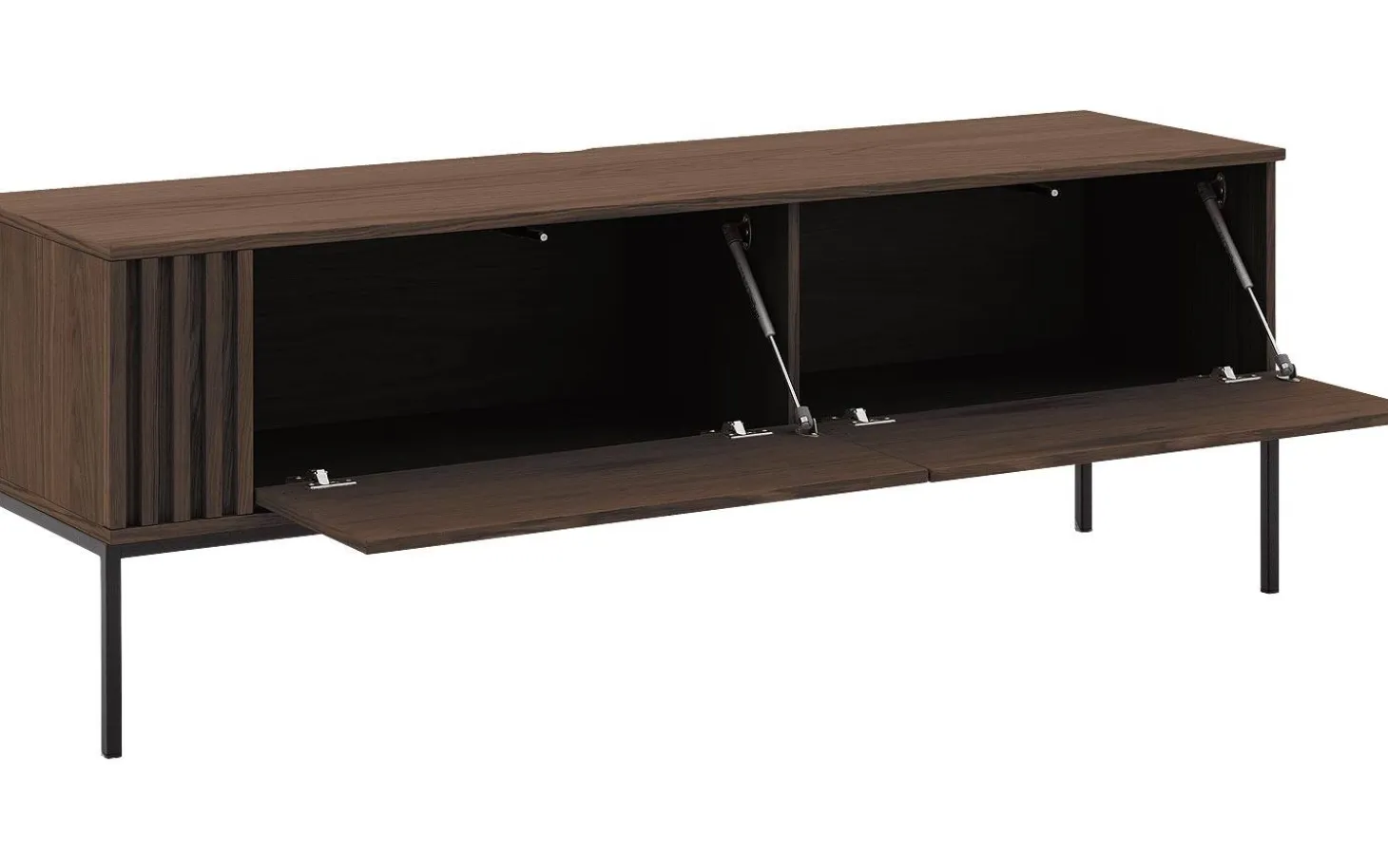 TV-Möbel Viola kombiniert stilvolles Design mit praktischem Stauraum für Ihr Wohnzimmer. Mit seiner warmen braunen Eichen-Ausstrahlung und eleganten schwarzen Metallfüßen passt dieses TV-Möbel perfekt in jedes moderne Interieur. Das clevere Push-to-Open-System sorgt für klare Linien ohne sichtbare Griffe.