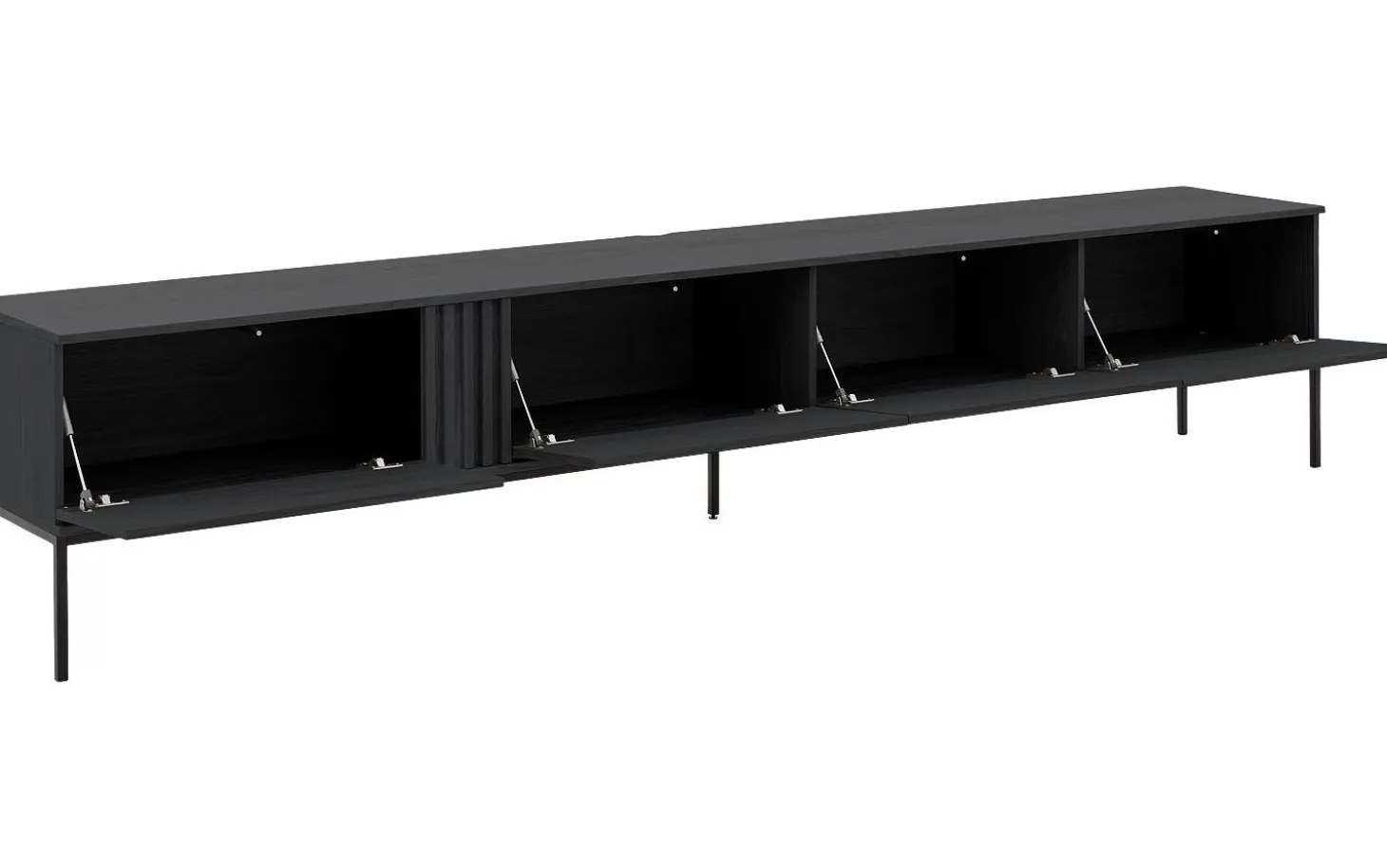 Das praktische Push-to-Open-System sorgt für eine klare Ausstrahlung ohne störende Griffe. Ein leichter Druck öffnet die Türen geräuschlos, danach haben Sie allen Platz für Ihre TV-Geräte, Spielkonsolen und andere Gegenstände. Optional erhältlich mit Kabeldurchführung für eine saubere Ausführung.