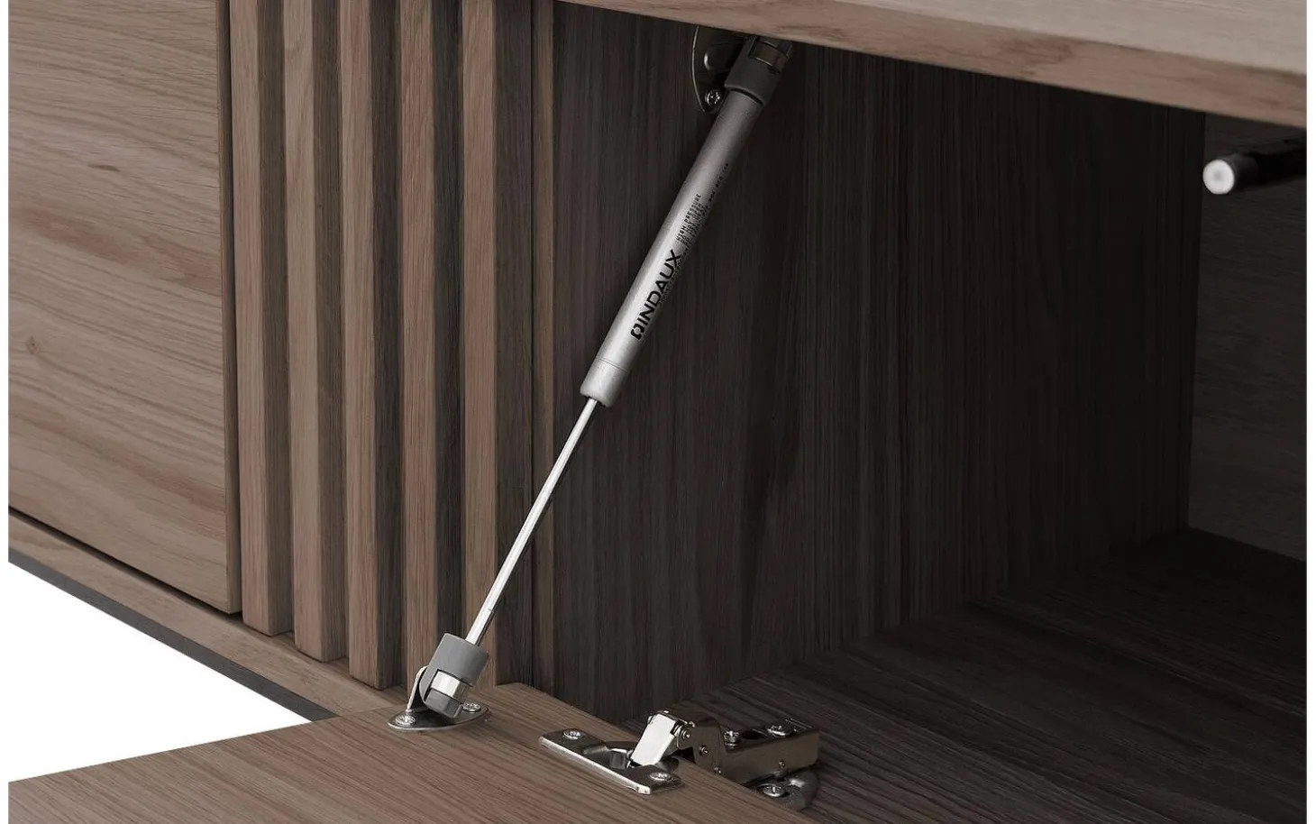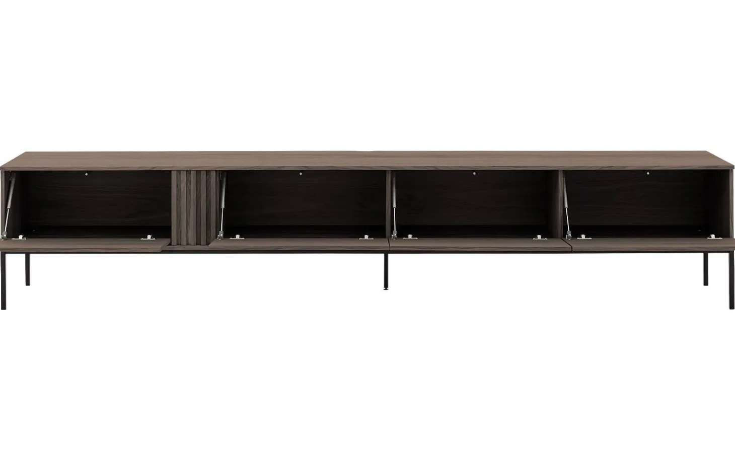 Hinter den vier Türen finden Sie reichlich Platz für Ihre TV-Geräte, Spielkonsolen und andere Gegenstände, die Sie ordentlich außer Sichtweite halten möchten. Das Eichenfurnier ist weniger empfindlich gegenüber Holzarbeitung, wodurch dieses TV-Möbel lange schön bleibt – auch bei täglichem Gebrauch.