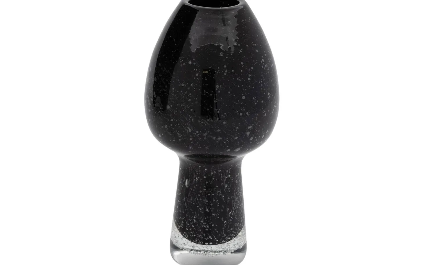 Vase Eydis bringt stilvolle Eleganz in Ihr Interieur mit ihrem auffälligen schwarzen Glasdesign und verspielten Sprenkelungen. Diese 22 cm hohe Glasvase kombiniert eine moderne Form mit einer charakteristischen Textur, die das Licht wunderschön reflektiert. Die kompakten Abmessungen von 11 x 22 x 11 cm machen diese schwarze Vase perfekt für verschiedene Plätze im Haus, vom Esstisch bis zur Fensterbank. Ob Sie nun frische Blumen präsentieren oder die Vase als dekoratives Element verwenden, Eydis fügt Ihrem Styling immer eine raffinierte Note hinzu.