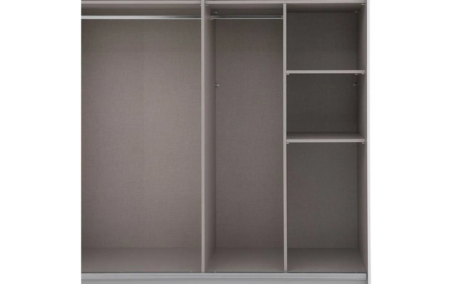 Sie möchten Ihre Kleider aufhängen und Ihre Hosen ordentlich in ein Einlegefach legen? Kein Problem dank des Fachteilers für den Kleiderschrank Miami mit einer Breite von 226 cm. Bitte beachten Sie, dass dieser Fachteiler nicht in Kleiderschränke mit anderen Maßen passt.