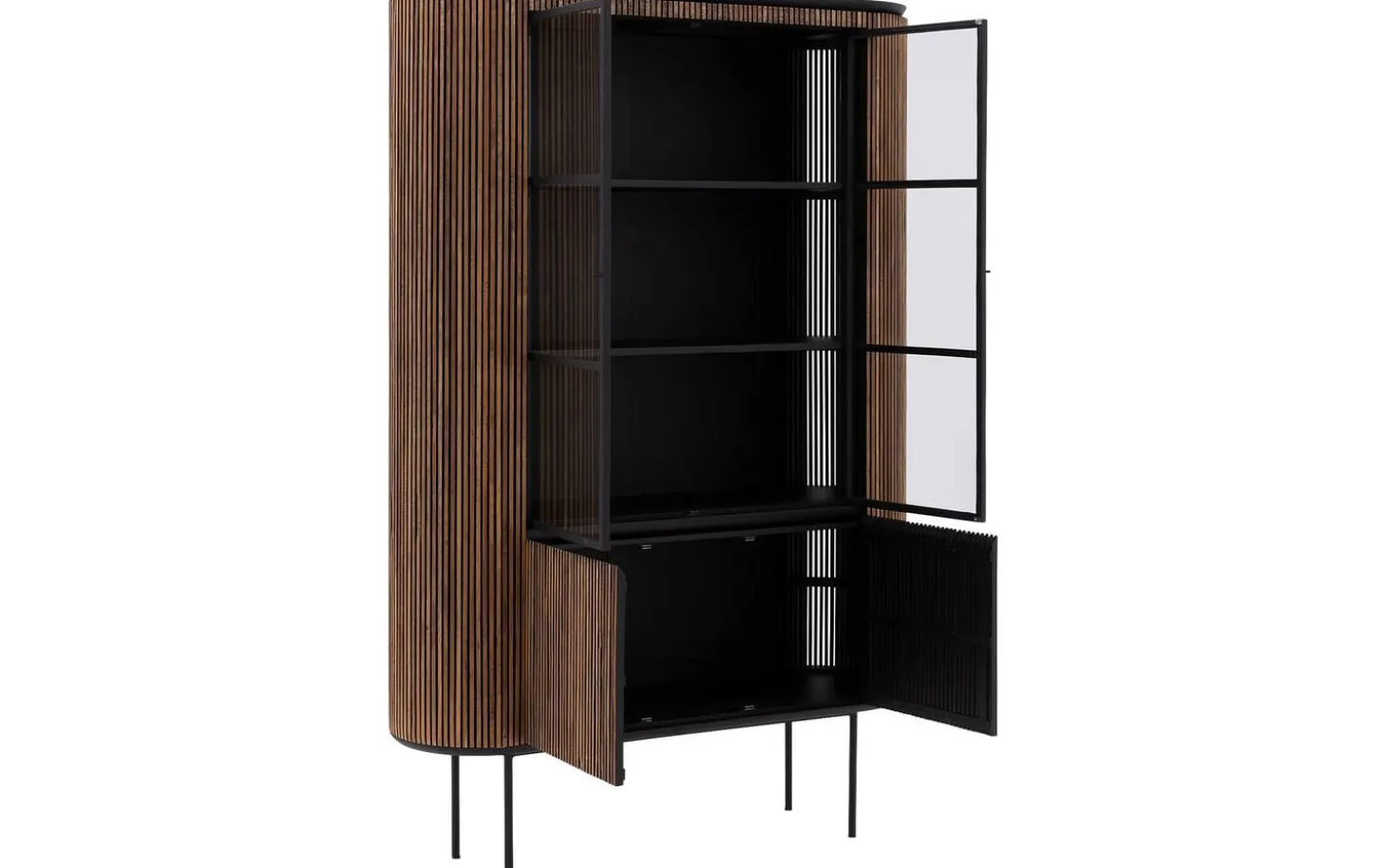 - Zwei Glastüren zur Präsentation und zwei geschlossene Türen für Stauraum