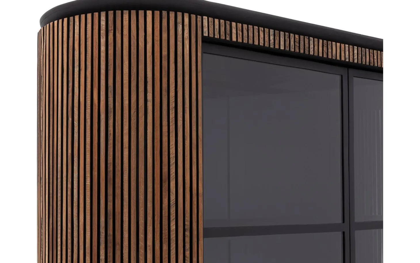 Stilvolle Details dieses Vitrinenschranks aus Teakholz