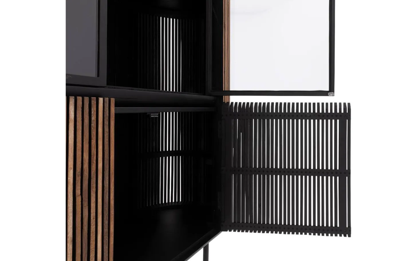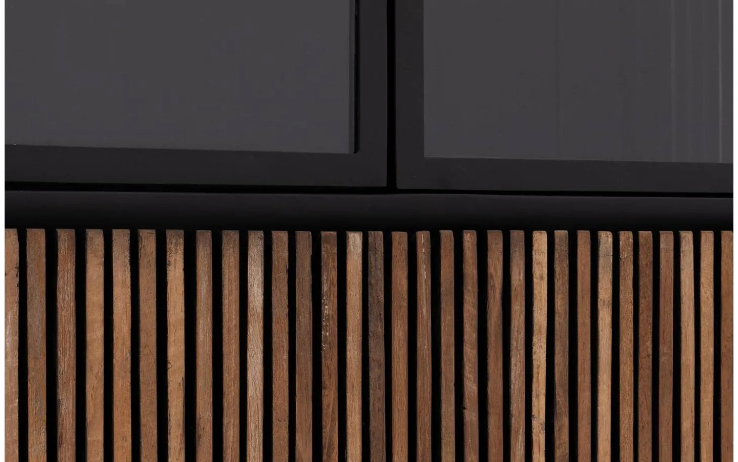 Die Kombination aus Glas- und geschlossenen Türen sorgt für vielseitige Aufbewahrungsmöglichkeiten. Präsentieren Sie Ihre schönsten Gegenstände hinter Glas und verstauen Sie andere Artikel diskret hinter den geschlossenen Türen. Ohne Griffe bewahrt der Schrank seine klaren, minimalistischen Linien.