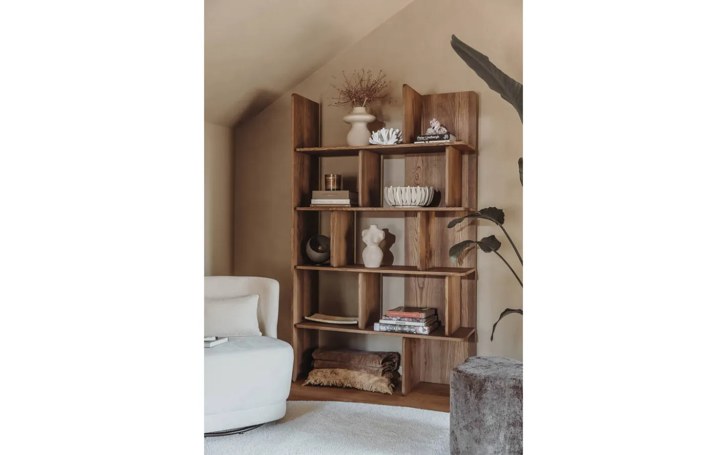 Jedes Fach hat seine eigene Geschichte zu erzählen. Von Designobjekten bis hin zu Fotokollektionen – die durchdachte Aufteilung gibt Ihnen allen Raum, um Ihren persönlichen Stil zum Ausdruck zu bringen. Die warme Nussfarbe bildet einen wunderschönen Hintergrund für all Ihre liebsten Gegenstände.
