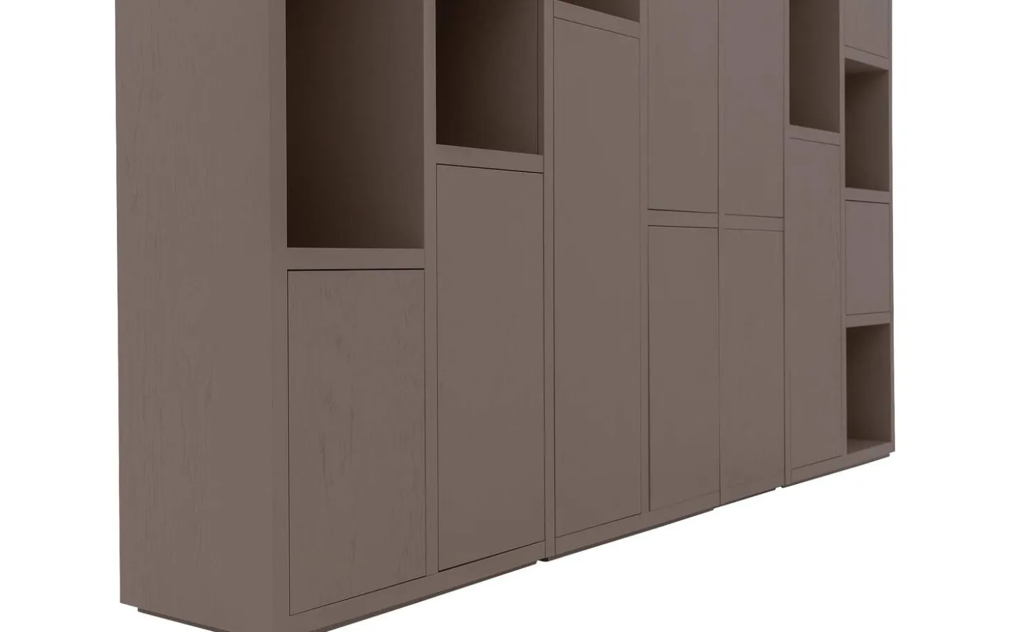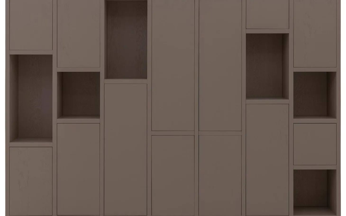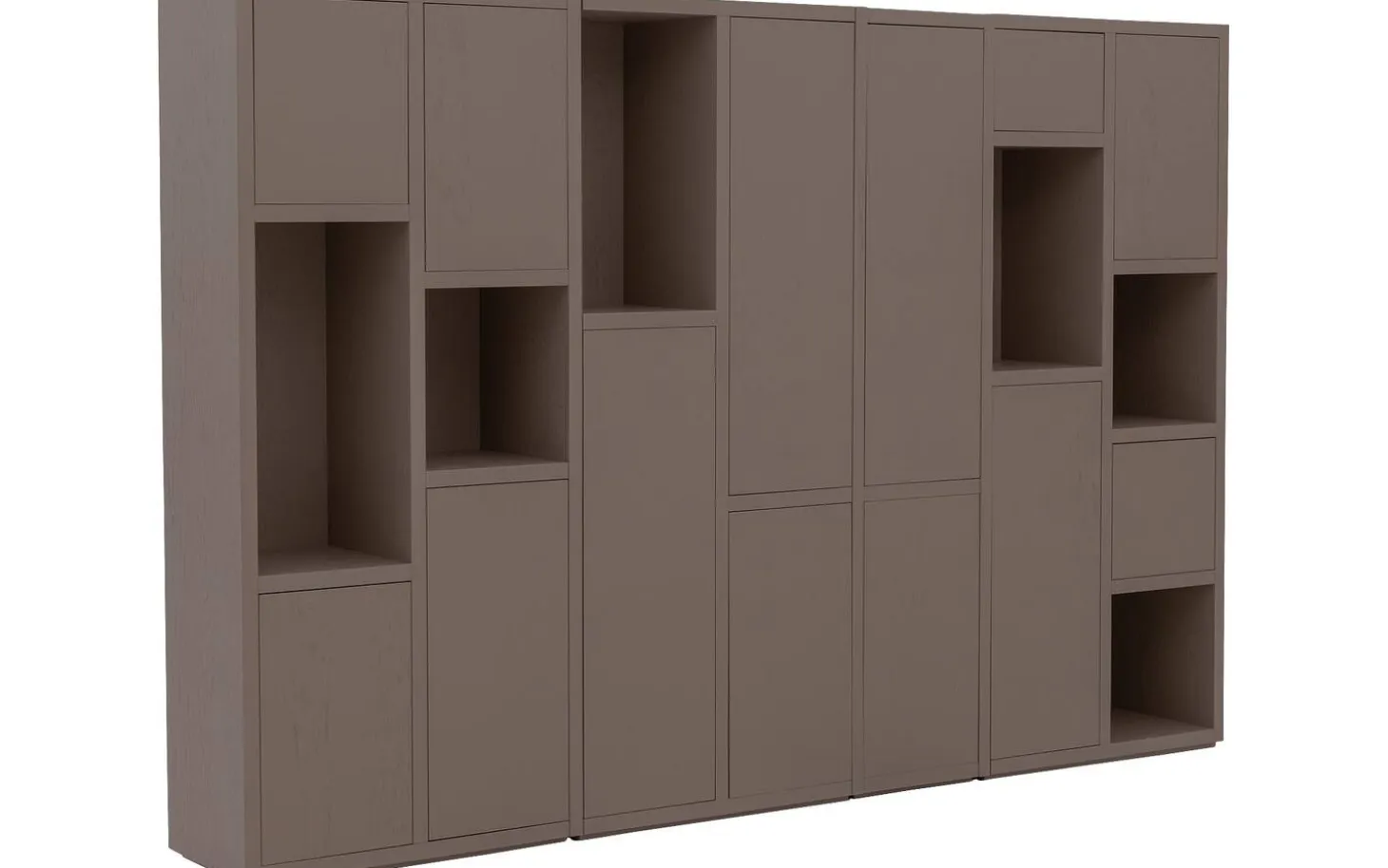 Met zes open vakken en dertien gesloten deuren regel je precies wat je wilt laten zien en wat liever uit het zicht blijft. Decoreer de open vakken met je mooiste spullen, terwijl je achter de deuren alle ruimte hebt voor praktische opslag. Het wandmeubel staat stevig op de grond zonder zichtbare poten, wat zorgt voor een rustige en strakke uitstraling.