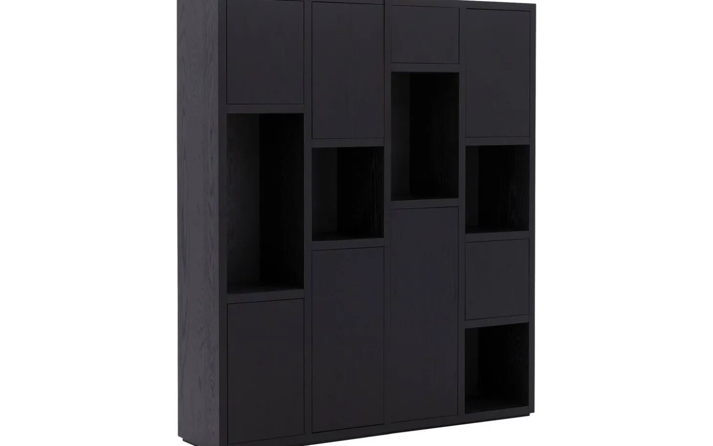 Wandmöbel Granada kombiniert moderne Geradlinigkeit mit warmer Eichen-Ausstrahlung in einer schwarz lackierten Ausführung. Dieses modulare System bietet reichlich Stauraum hinter Push-to-Open-Türen und offenen Fächern für Ihre schönsten Wohnaccessoires. Ein raffinierter Blickfang, der Ihrem Interieur sofort Charakter verleiht.