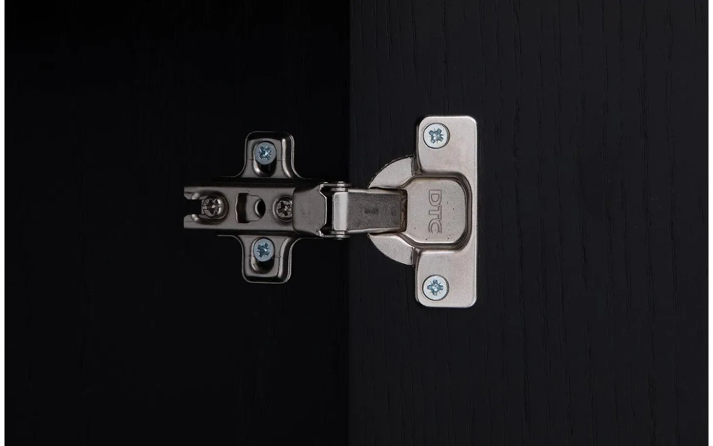 Die elegante schwarz lackierte Ausführung schützt effektiv vor Flecken und Ringen, während die natürliche Eichen-Holzmaserung sichtbar bleibt. Dies sorgt für eine warme Ausstrahlung trotz der modernen schwarzen Farbe. Das Push-to-Open-System hält die Linien geradlinig und verleiht dem Ganzen eine luxuriöse Ausstrahlung.