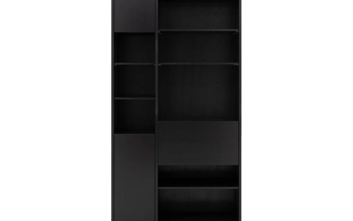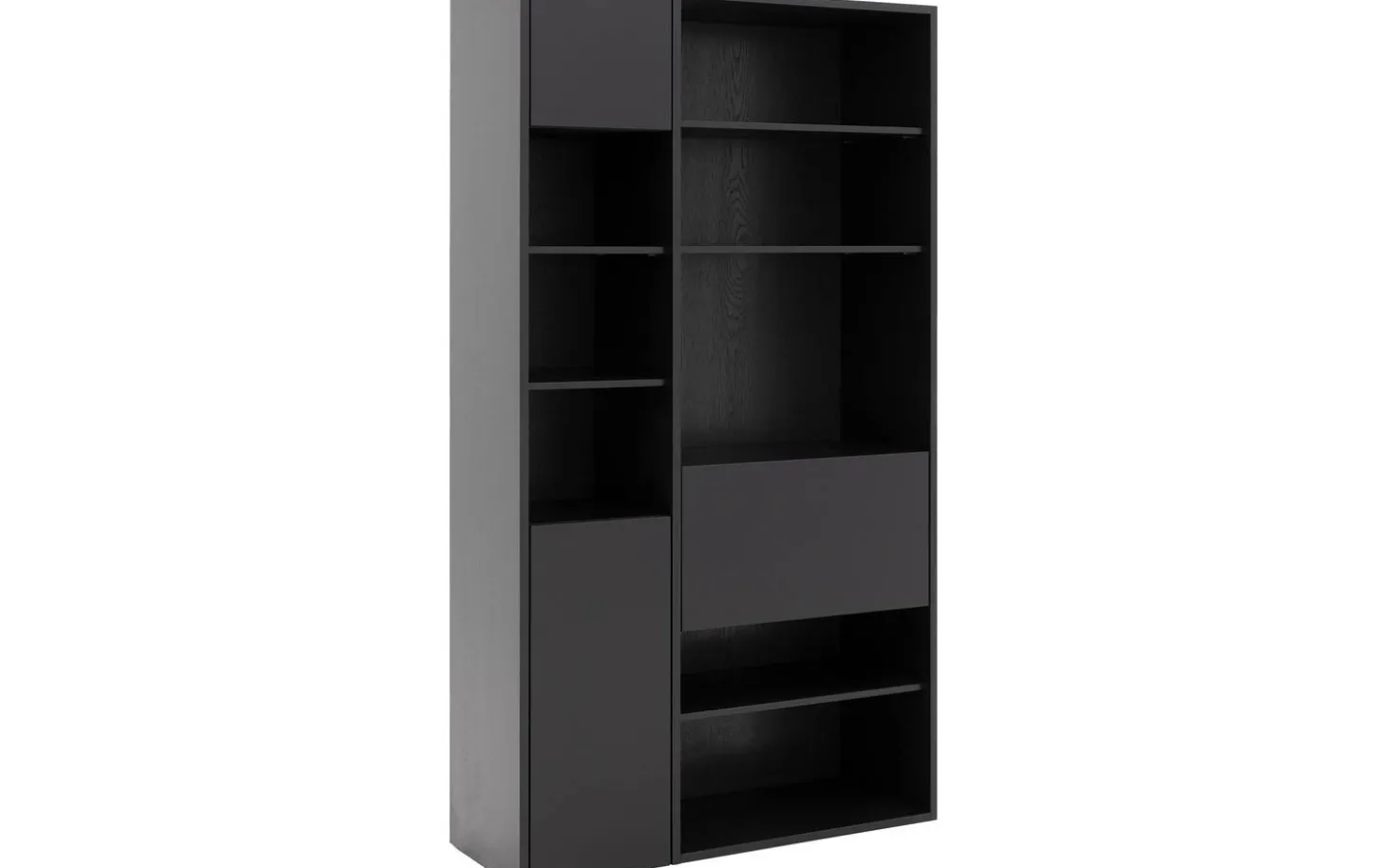 Wandmöbel Ninth kombiniert praktischen Stauraum mit stilvollen Präsentationsmöglichkeiten. Dieser schwarze Eichen-Eyecatcher bietet sieben offene Fächer für Ihre schönsten Accessoires und geschlossenen Stauraum für Gegenstände, die nicht sichtbar sein sollen. Perfekt für alle, die eine aufgeräumte und persönliche Ausstrahlung lieben.