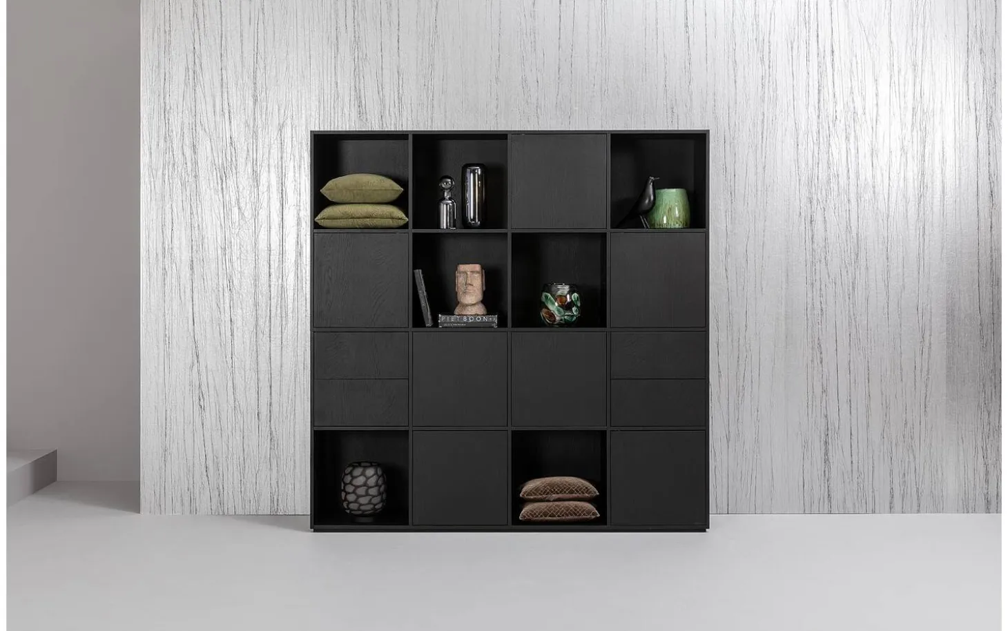 Stilvolle Details dieses schwarzen Wandschranks